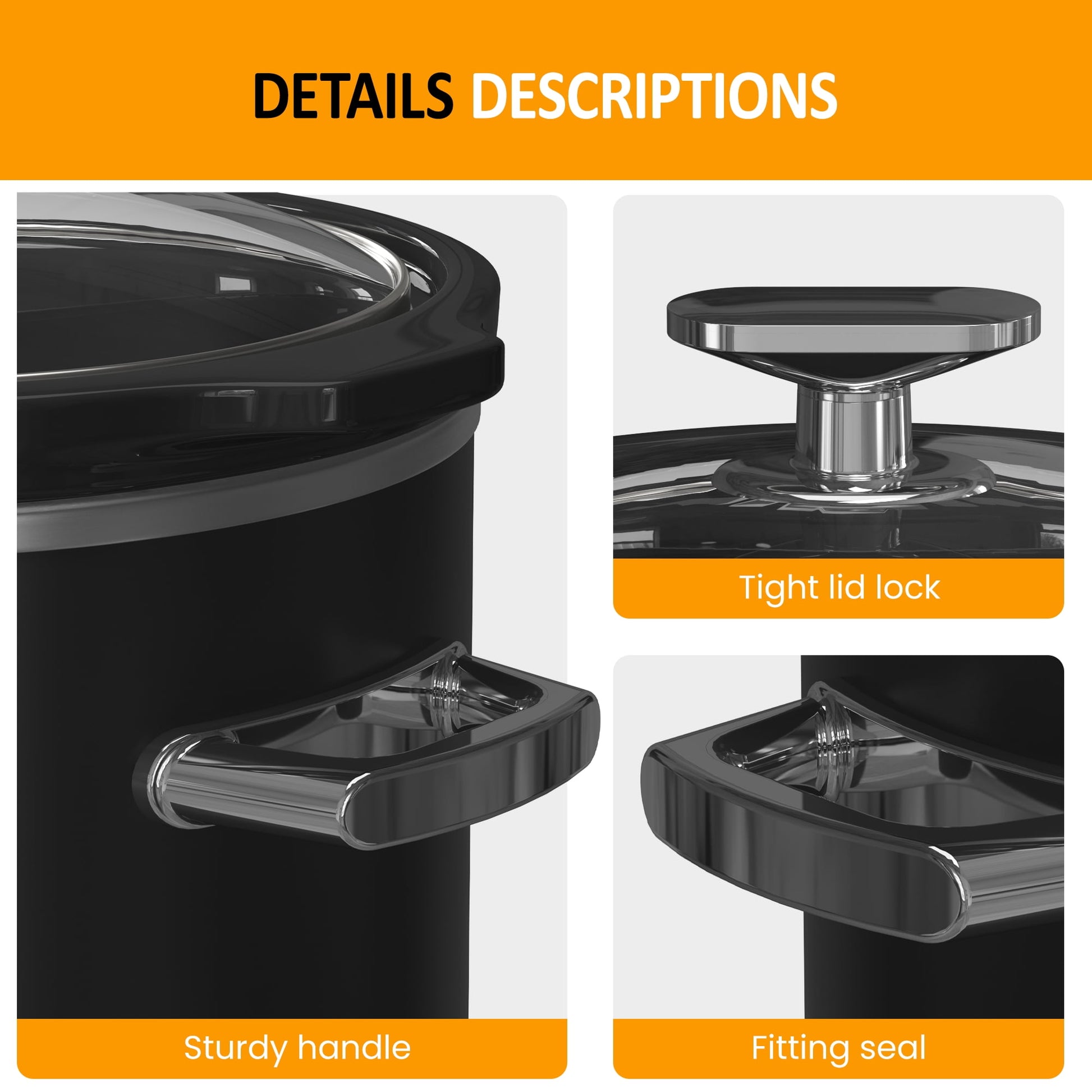 2QT Small Slow Cooker with Removable Ceramic Pot, 3 Heating Settings, Dishwasher-Safe Glass Lid, Black