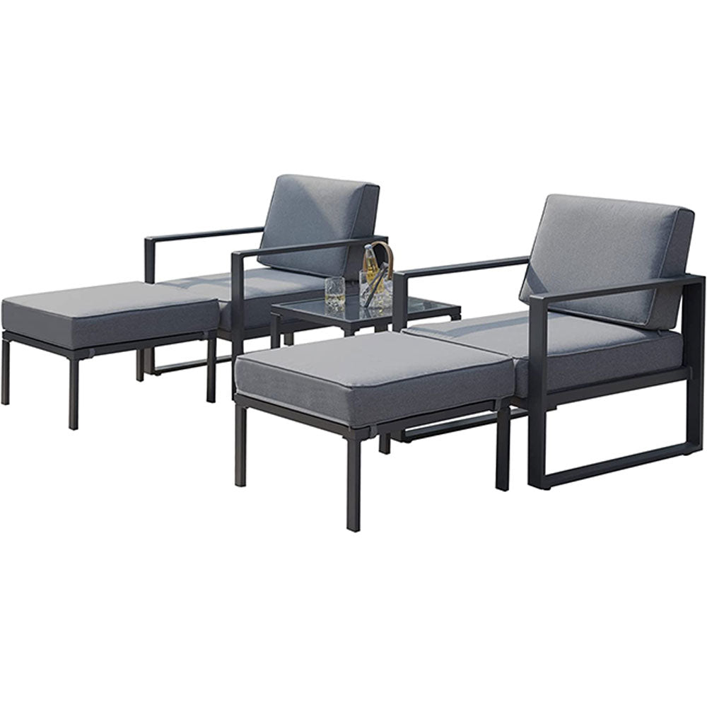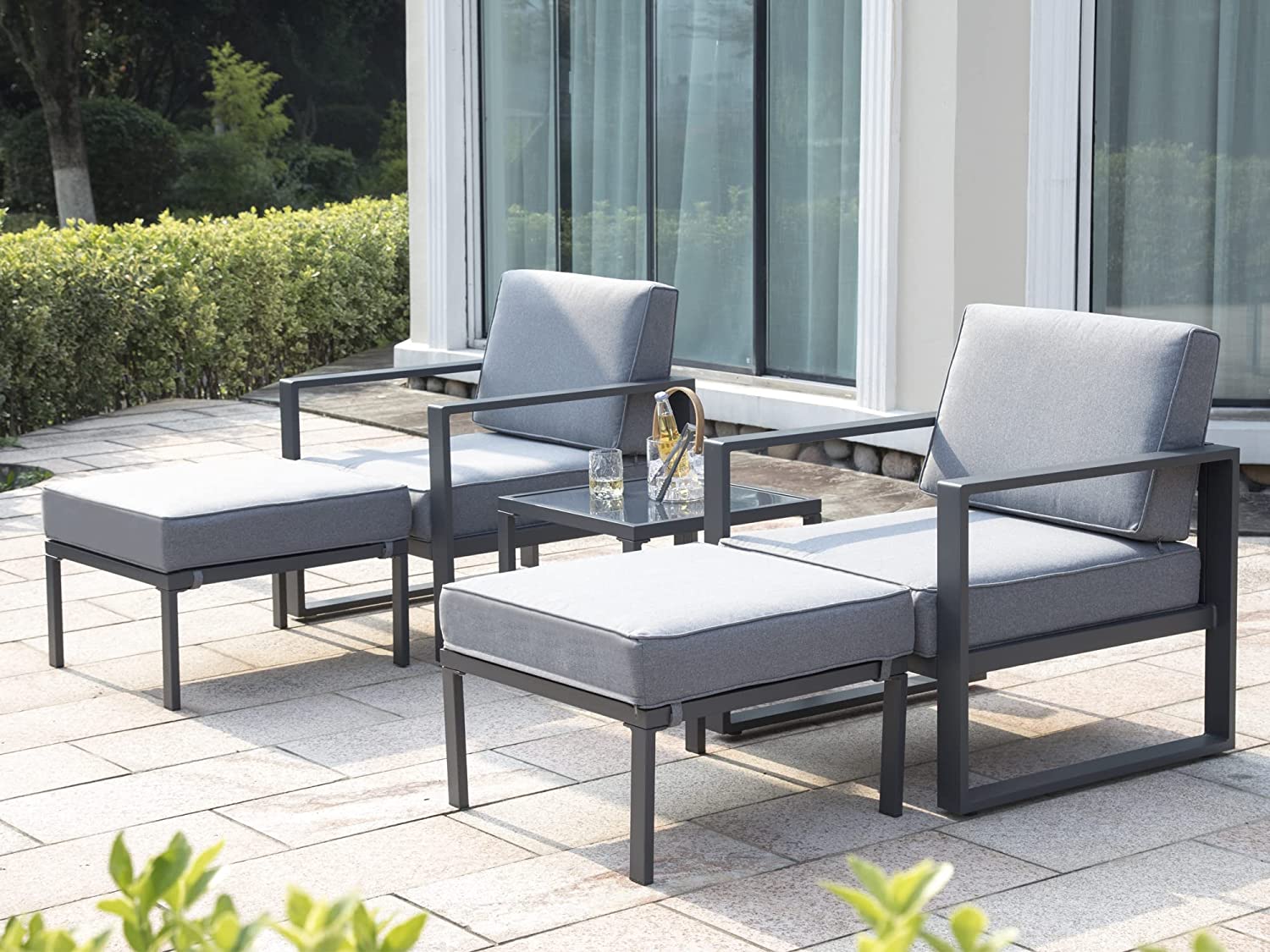 INCLUDING- This aluminum outdoor furniture set includes: 2 x armchair, 1 x side table, and 2 x ottomans. Every moment spent on this set is going to be worth it