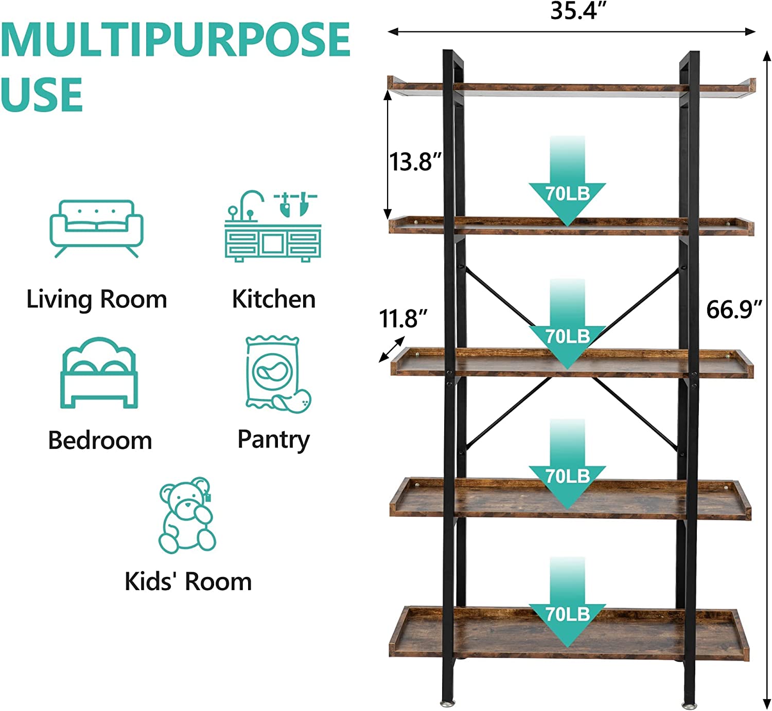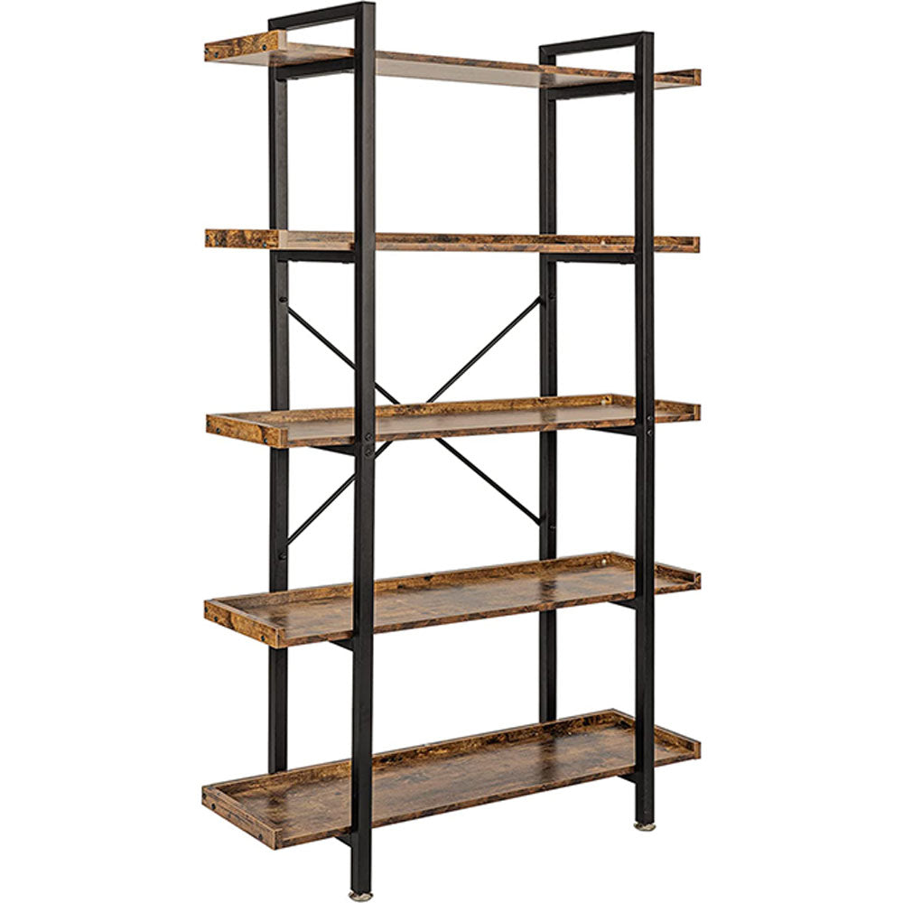 5 Tier Bookshelf Industrial Wood and Metal Bookcase