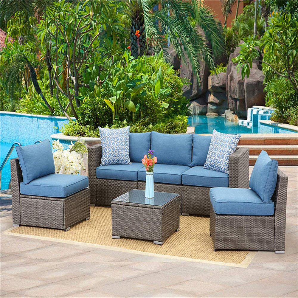 6 Piece Wicker Patio Furniture Sets with Cushion