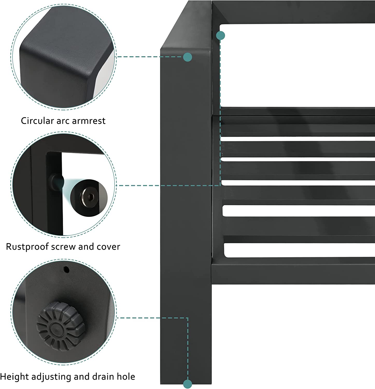 COMFORTABLE- The metal patio furniture features a generously sized deep seat(tall-guy friendly) that???ll revitalize your outdoor experience. Designed with a function-in-mind concept, the armrests are wide enough for your coffee cups. Included cushions of the outdoor furniture sets offer outstanding performance and are stuffed with 5??I thick sponges fill for sink-in comfort