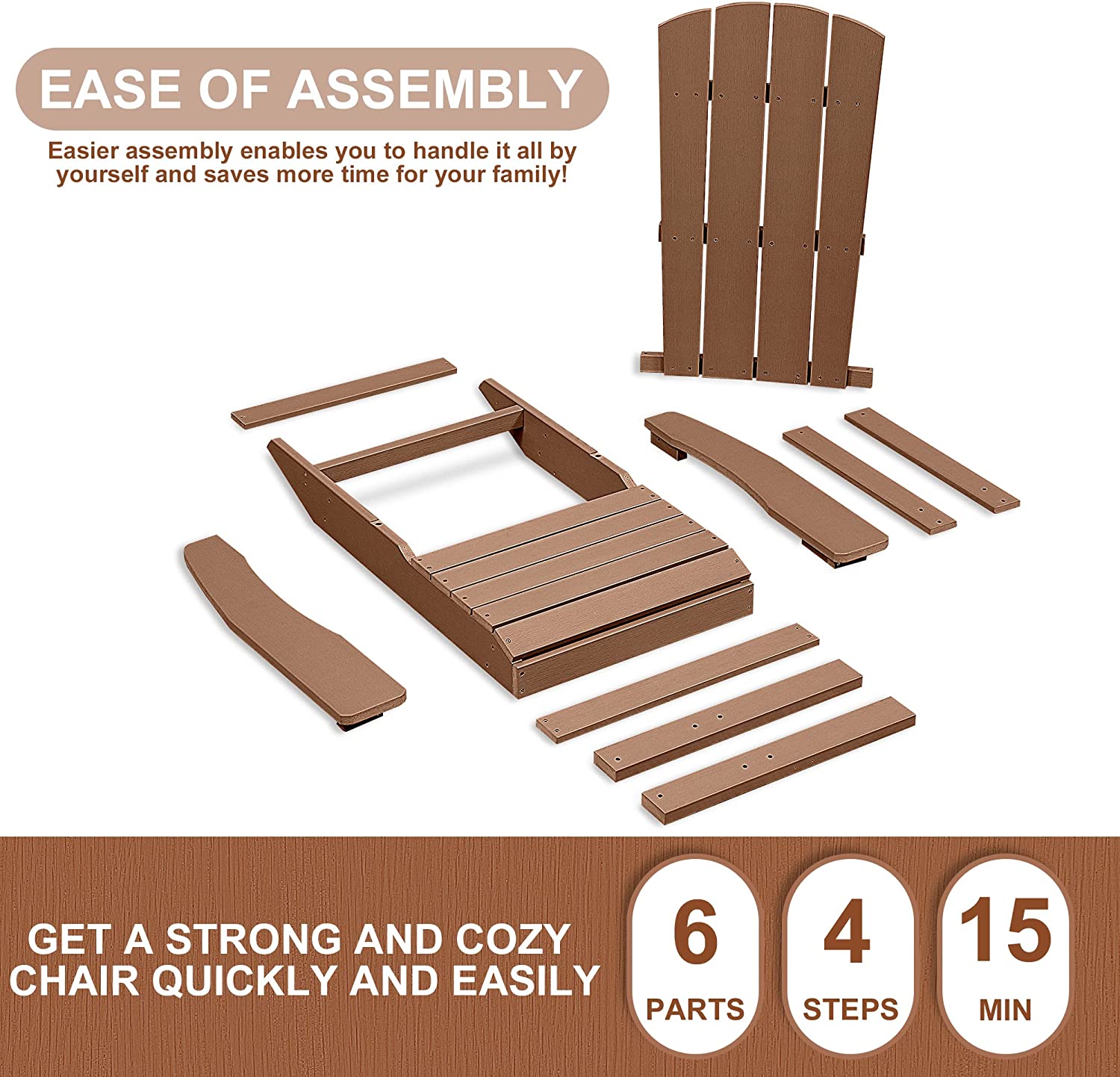 The Adirondack chairs set of 4 is a specially designed patio chair, with a comfortable and straight line cutting the seat back and wide armrests, ergonomically designed to maximize the relaxation of the cervical spine and relieve the fatigue of the day.
