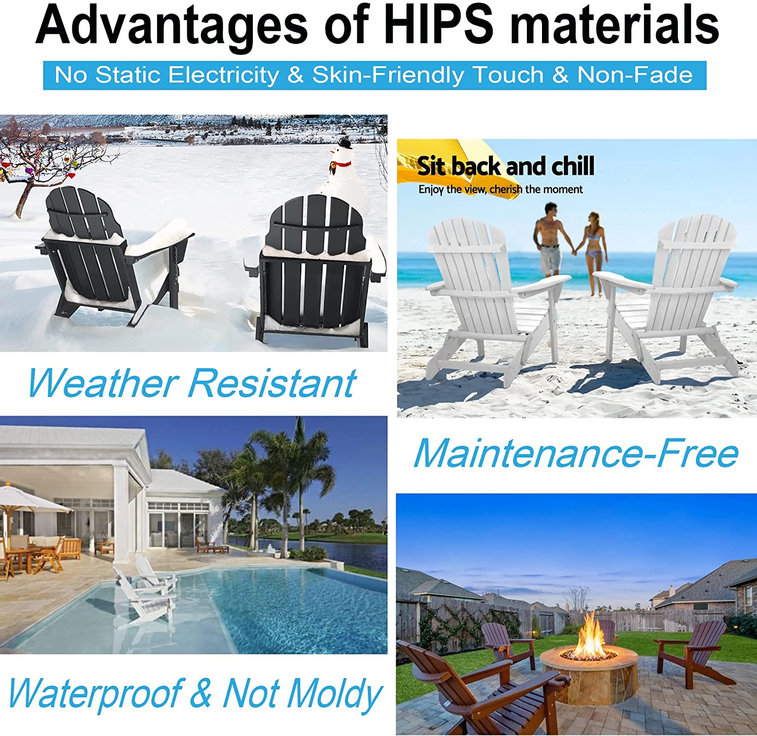 Adirondack Chairs Set of 4, Non-Fade&Maintenance-Free