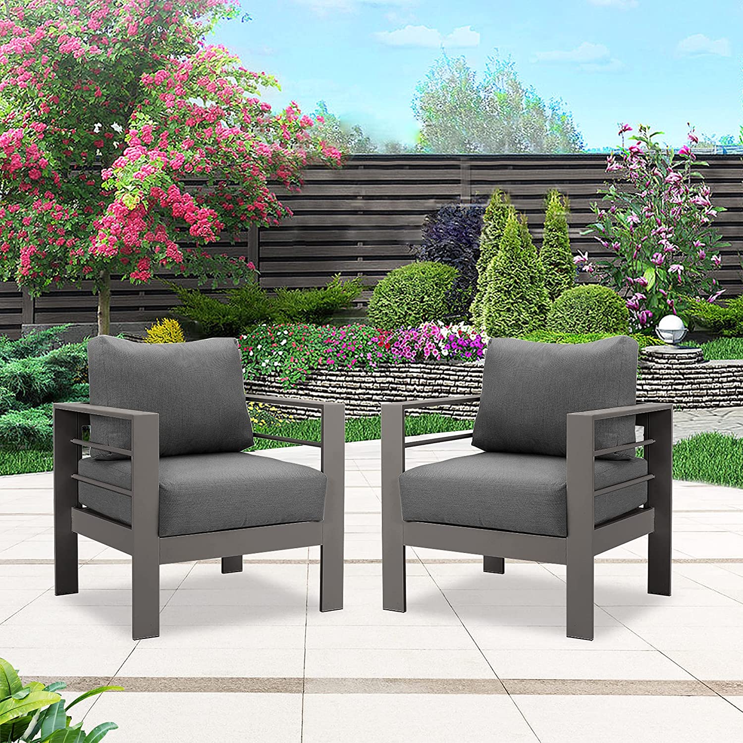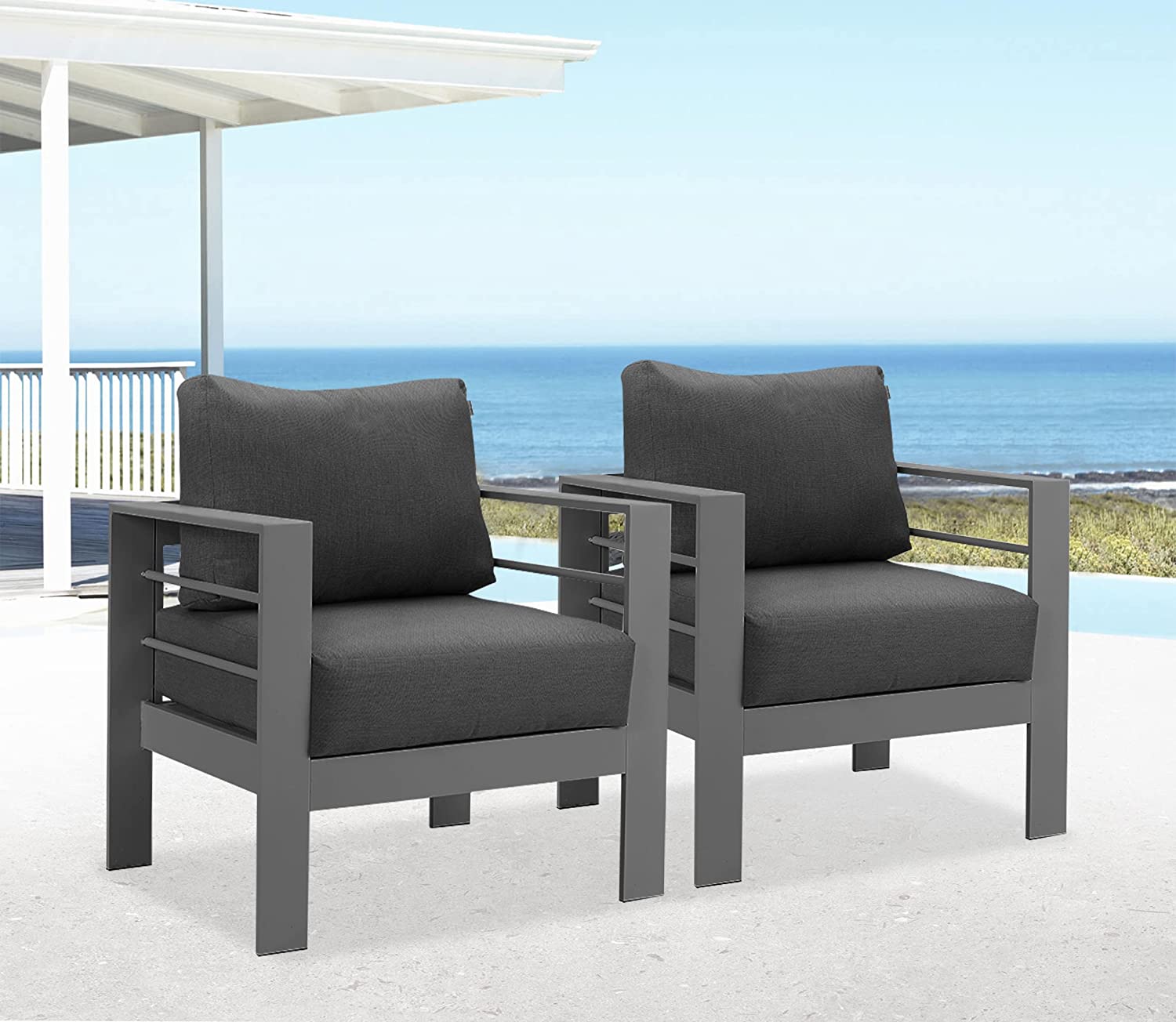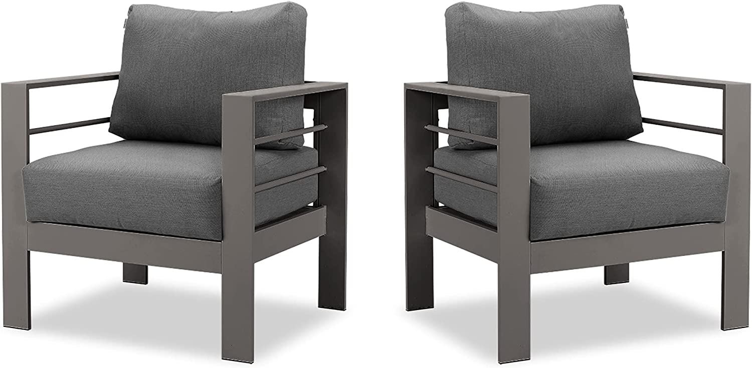 LOW MAINTENANCE- The rust-resistant aluminum frame means that it needs low maintenance effort: Wash the aluminum patio outdoor armchair and remove scuff marks with a soft cloth. The zippered Olefin fabric cushion covers are machine-washable and quick-drying to create easy cleaning for outdoor use. With modern furniture seating, you can reserve the bulk of your outside hours to enjoy your living space instead of maintaining it.