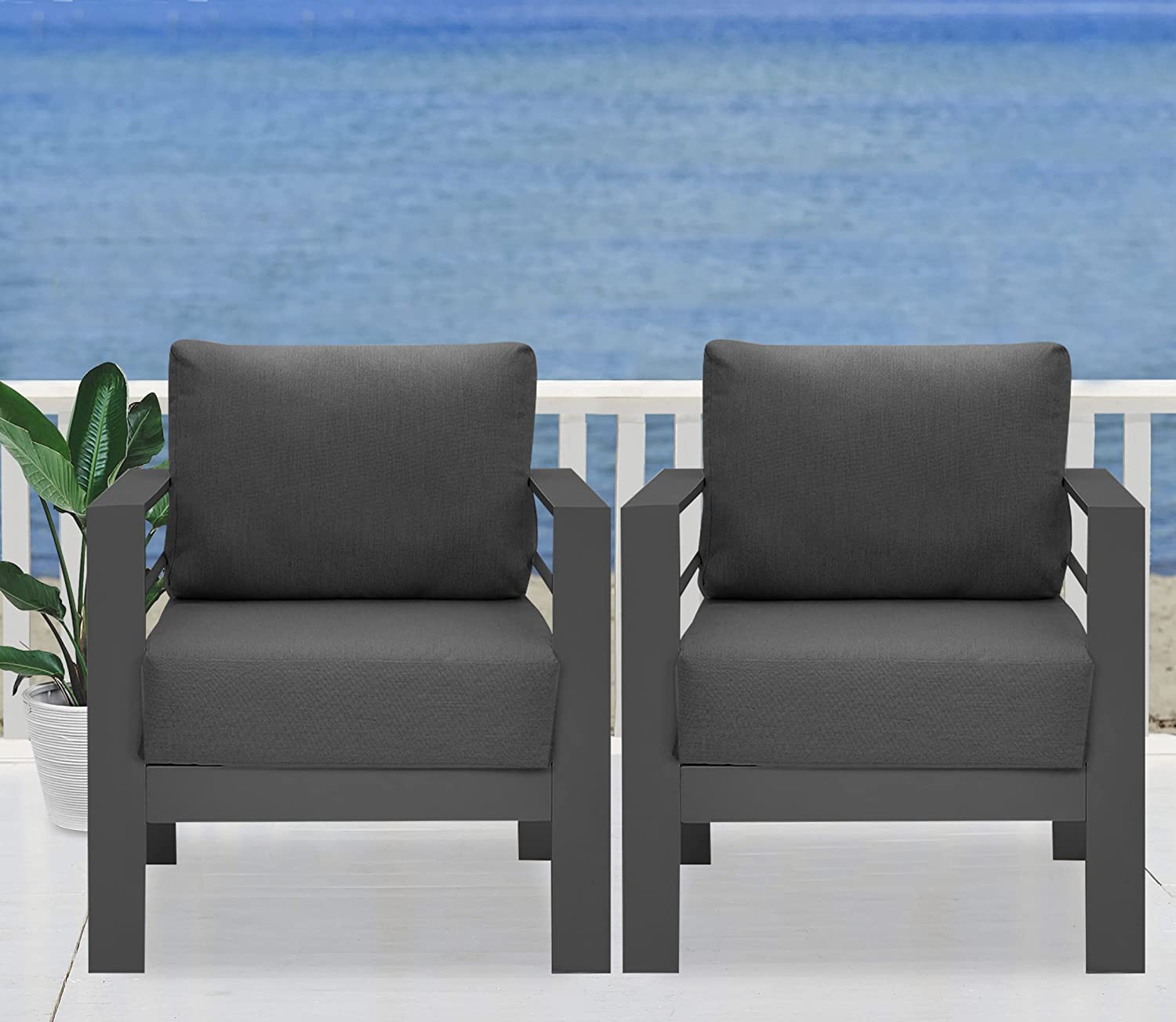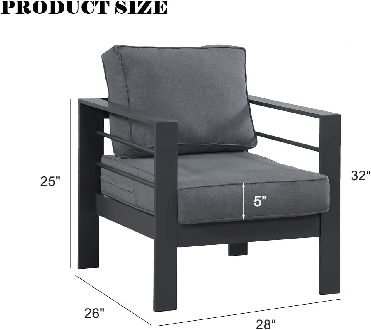 PURE ALUMINUM- The sleek, powdercoated aluminum patio outdoor armchair frame is made of durable pure aluminum with a protective powder-coat finish, which is both strong and substantial while being lightweight. Compared with ordinary iron/steel furniture, the great virtue of the metal sofa chair including anti-fade, -mold, and -rust offers further protection against the elements.
