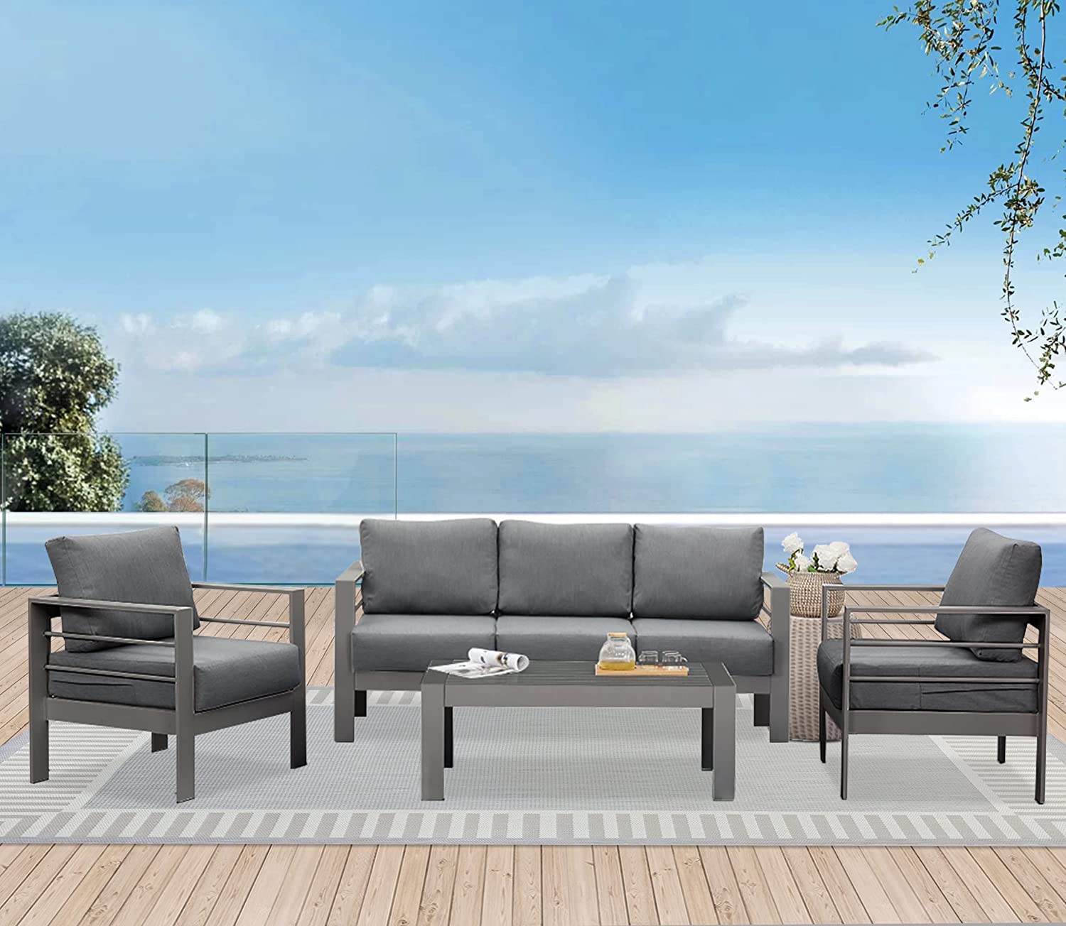 5" OLEFIN CUSHION- The aluminum outside set comes with 5??I thin-thick design cushions that are upholstered in water-repellent and UV-protective Olefin fabric for ergonomic fit yet optimal comfort. Filled with a high-resiliency foam core adding loose texture, the outdoor patio furniture set cushions balance well with the aluminum frame yet are ready for relaxation mode.
