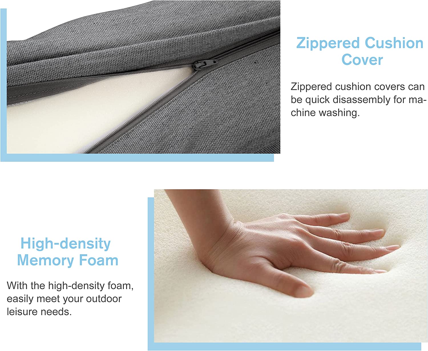 PURSUIT of DETAILS- Fully welded, aluminum outdoor patio furniture provides strength and ensures both sturdiness and durability. Upgraded stainless screws necessarily guarantee the quality of the conversation set frame. The plastic foot protectors of the 4 aluminum legs effectively prevent floor scratches and eliminate scraping noise.