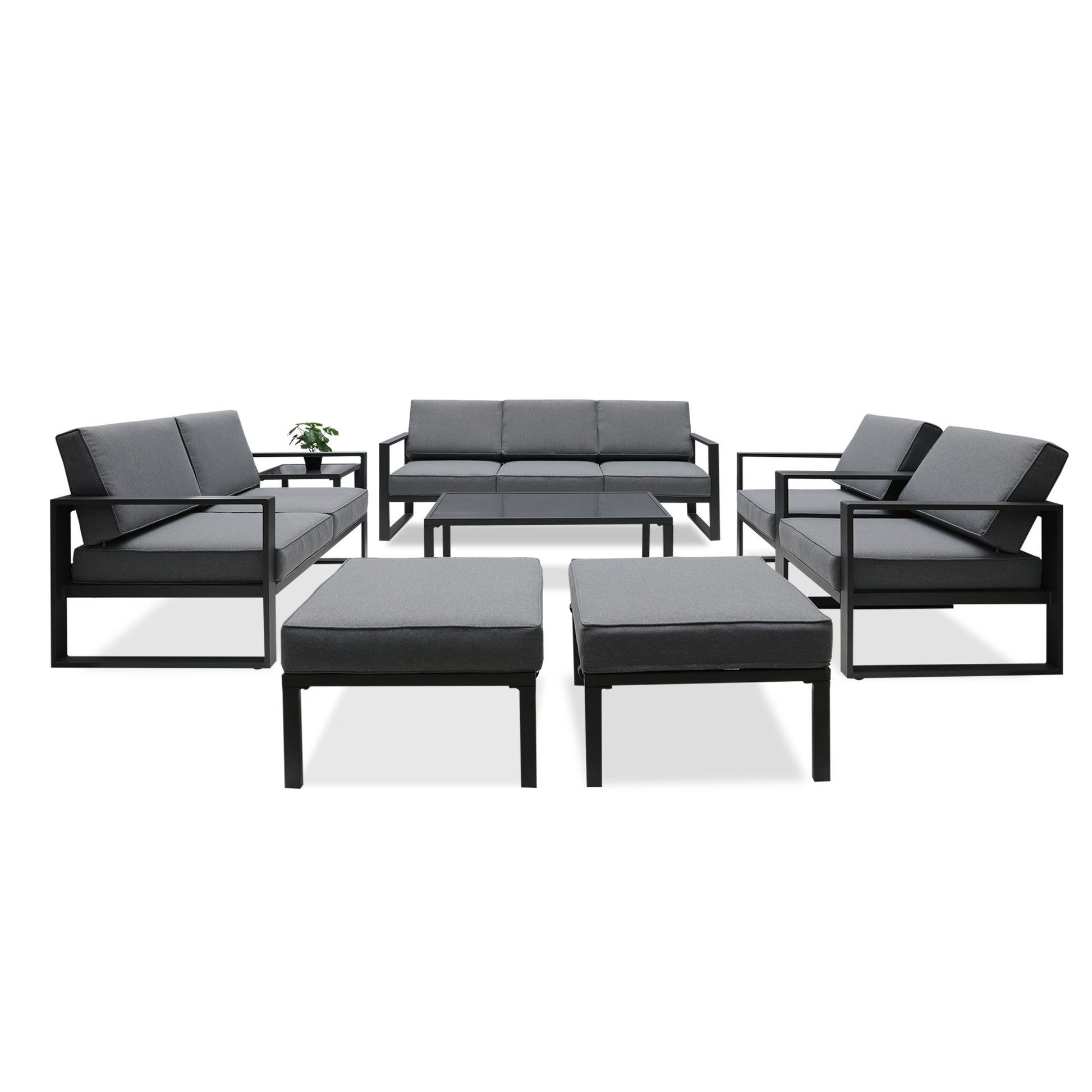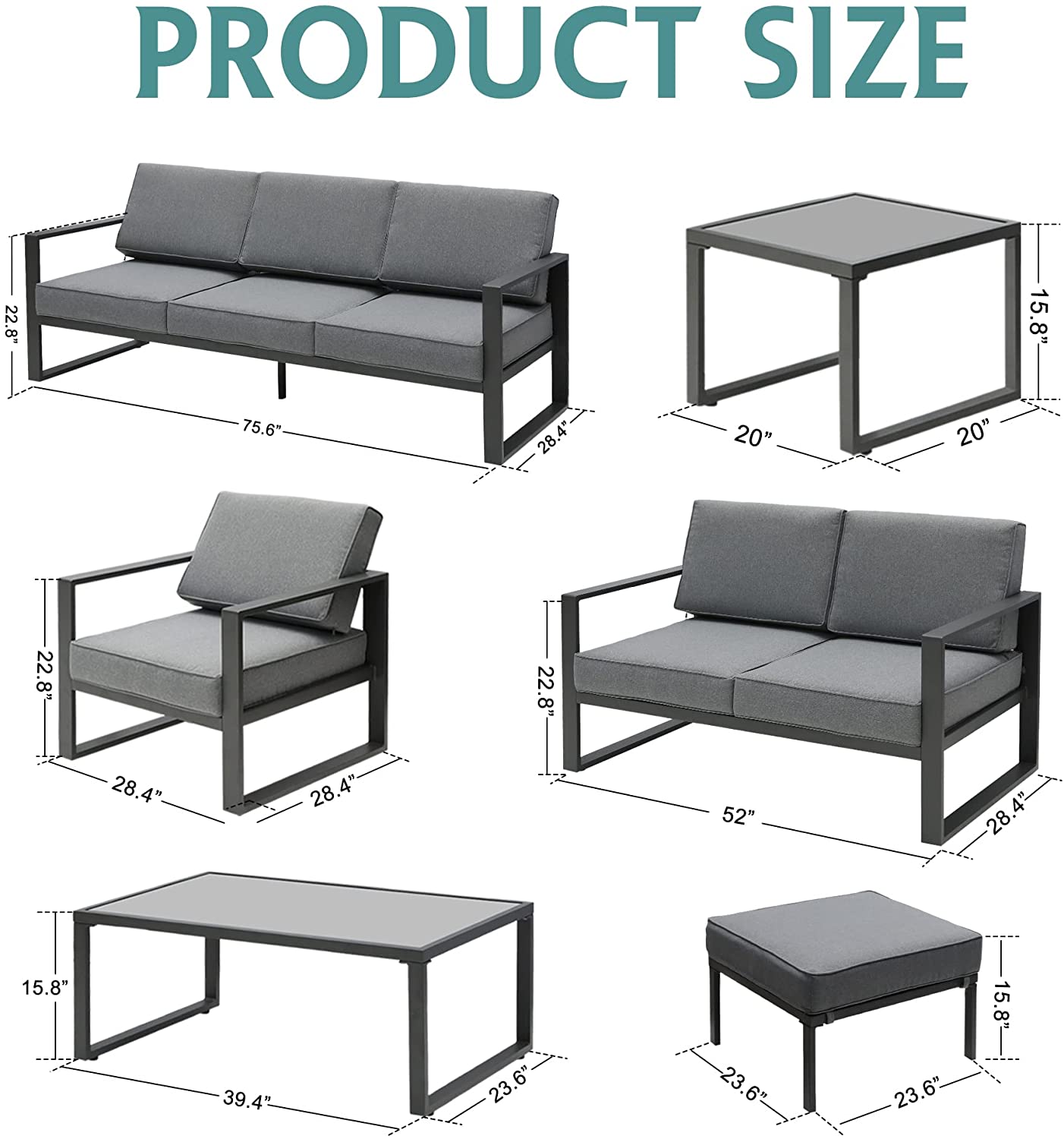 ??Including- This aluminum outdoor furniture set includes: 2 x armchair, 1 x loveseat, 1 x 3-seat sofa, 1 x coffee table, 1 x end table and 2 x ottoman. Every moment spent on this set is going to be worth it!