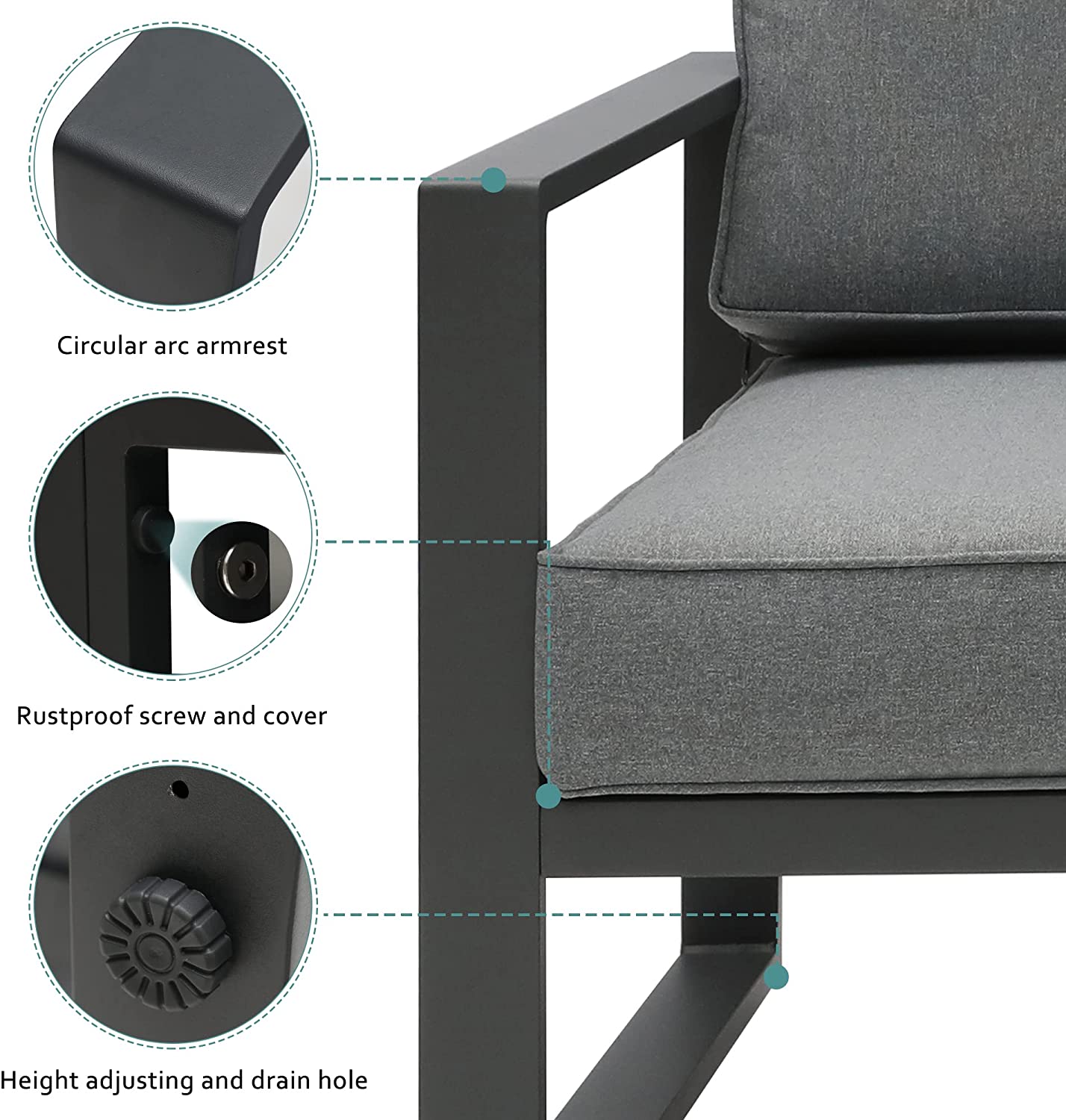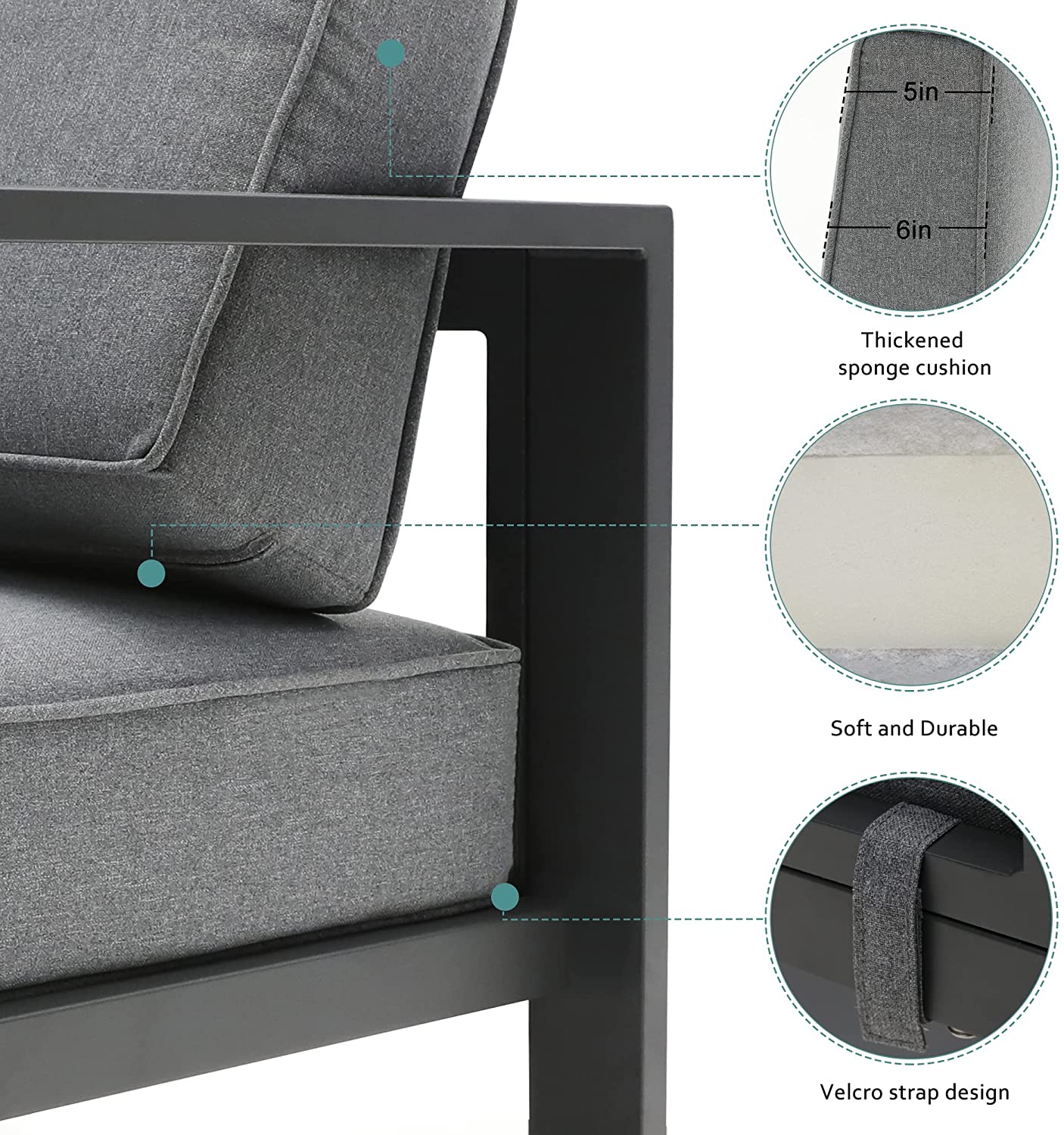 ??Durable: This aluminum outdoor furniture set will last you for years to come! Unlike most patio furniture, this patio sofa is made with the premium aluminum. The frame is rust-proof, all-weather resistant, and built to last.