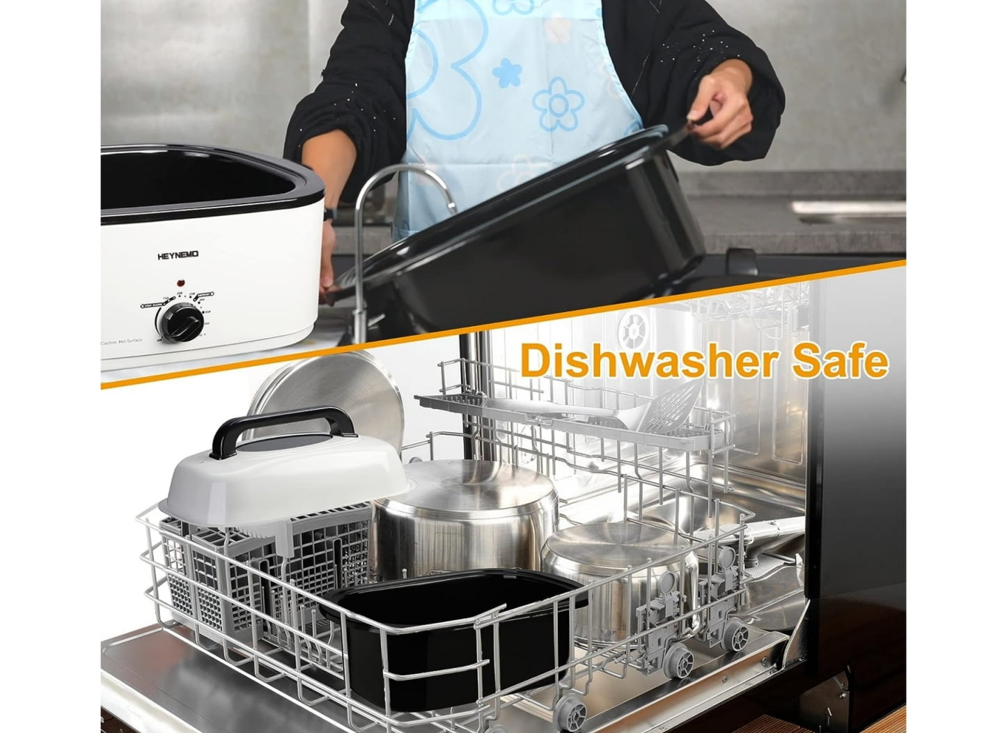 The versatile electric roaster bakes, slow cooks, roasts. Add more joy to your life. Self-Basting lid continually recirculates moisture, make the food more delicious. Full-range temperature control, warming setting keeps dinner at ideal serving temperature. Cool-Touch handles on the lid and body, can protect your hands. Removable insert pot, make it easier for you to clean it. If you have any question about our electric roaster bakes, welcome to contact us. We'll be happy to serve you.