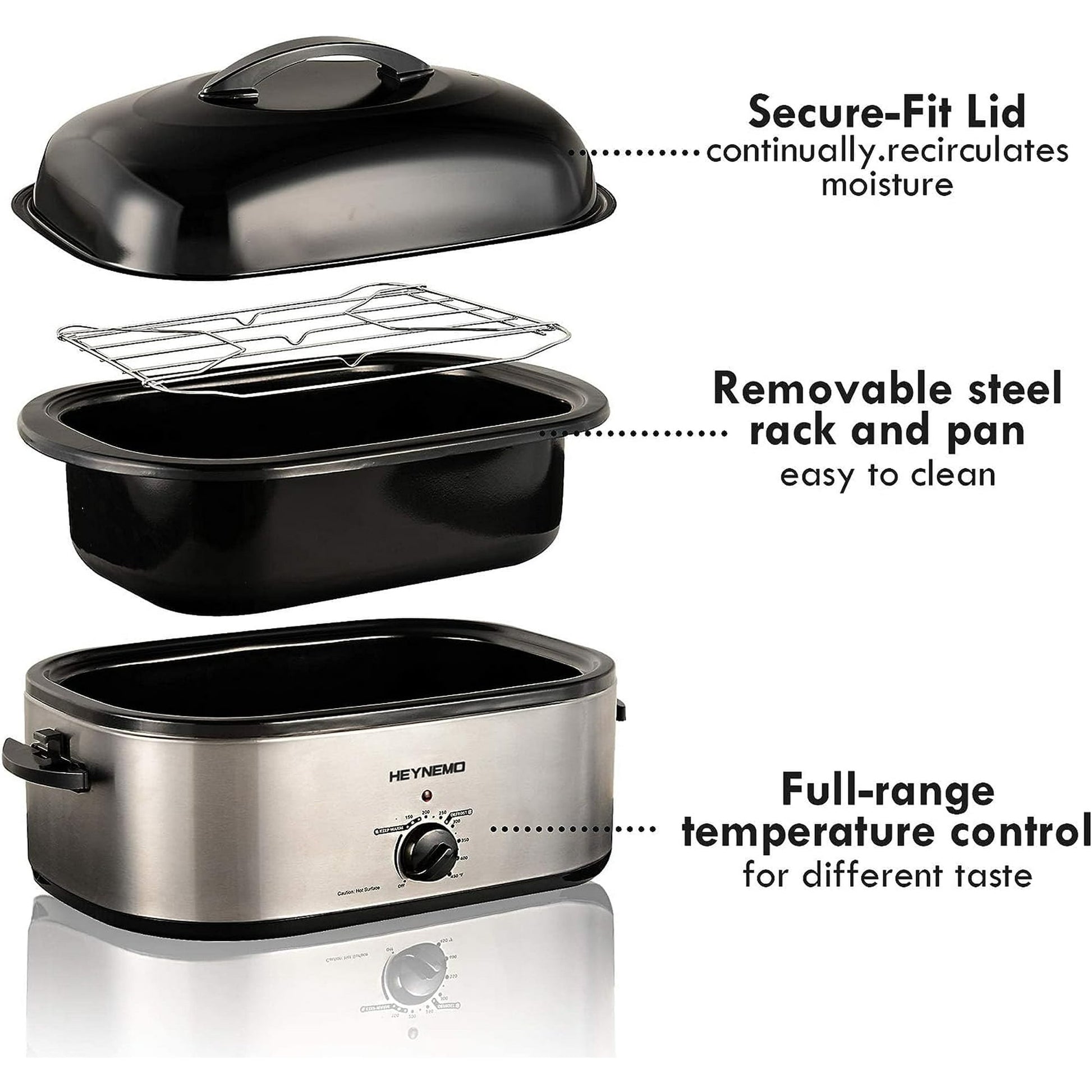 Special Feature: Visible Lid, Fit up for 30Lb Turkey, Cool-touch Handle, Removable Pan