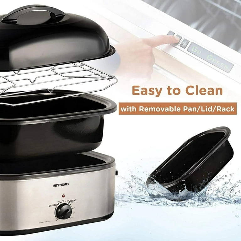 CozyHom 18 Quart Electric Turkey Roaster Oven, Stainless Steel Roaster Oven With Self-Basting Lid Removable Insert Pot, Silver