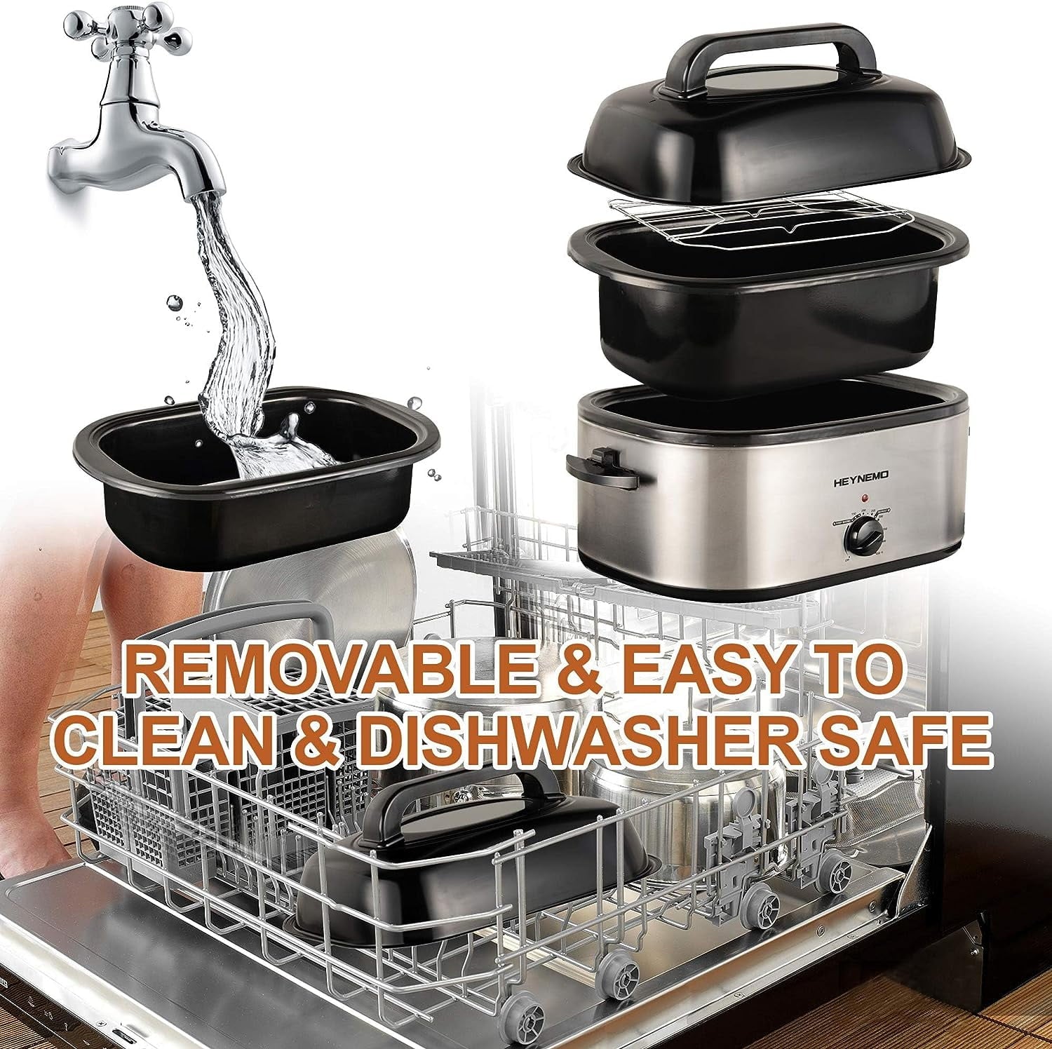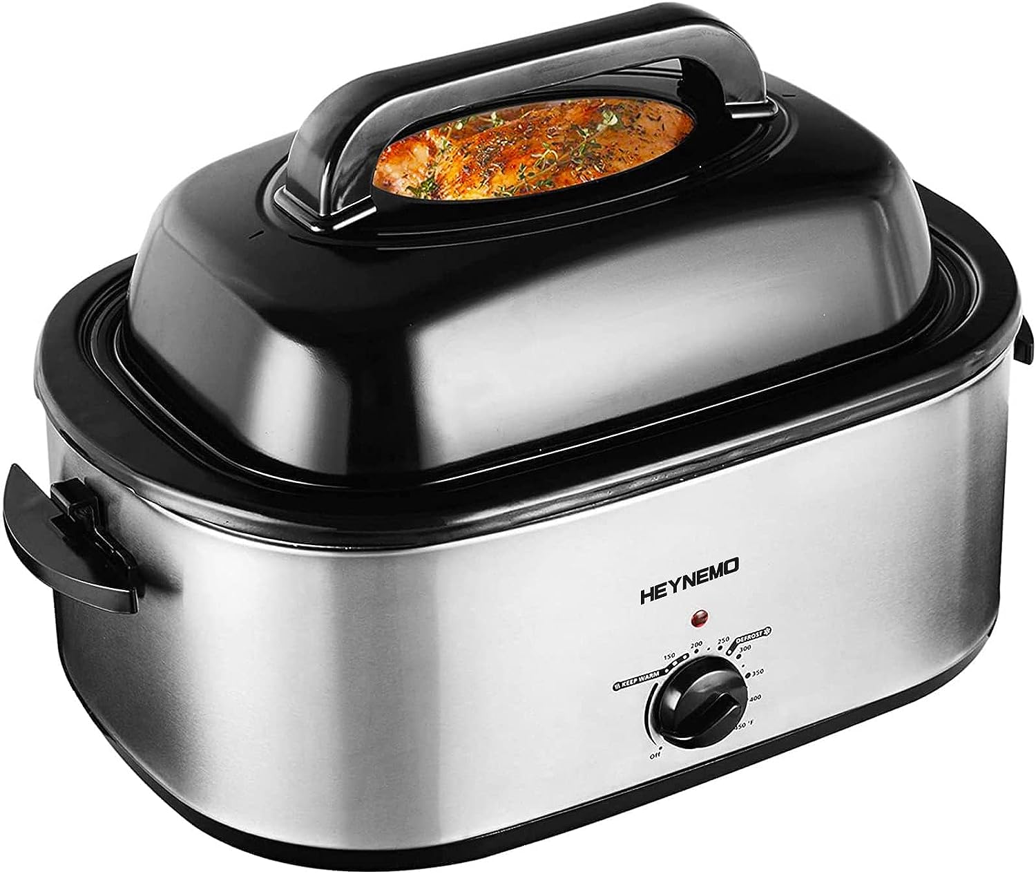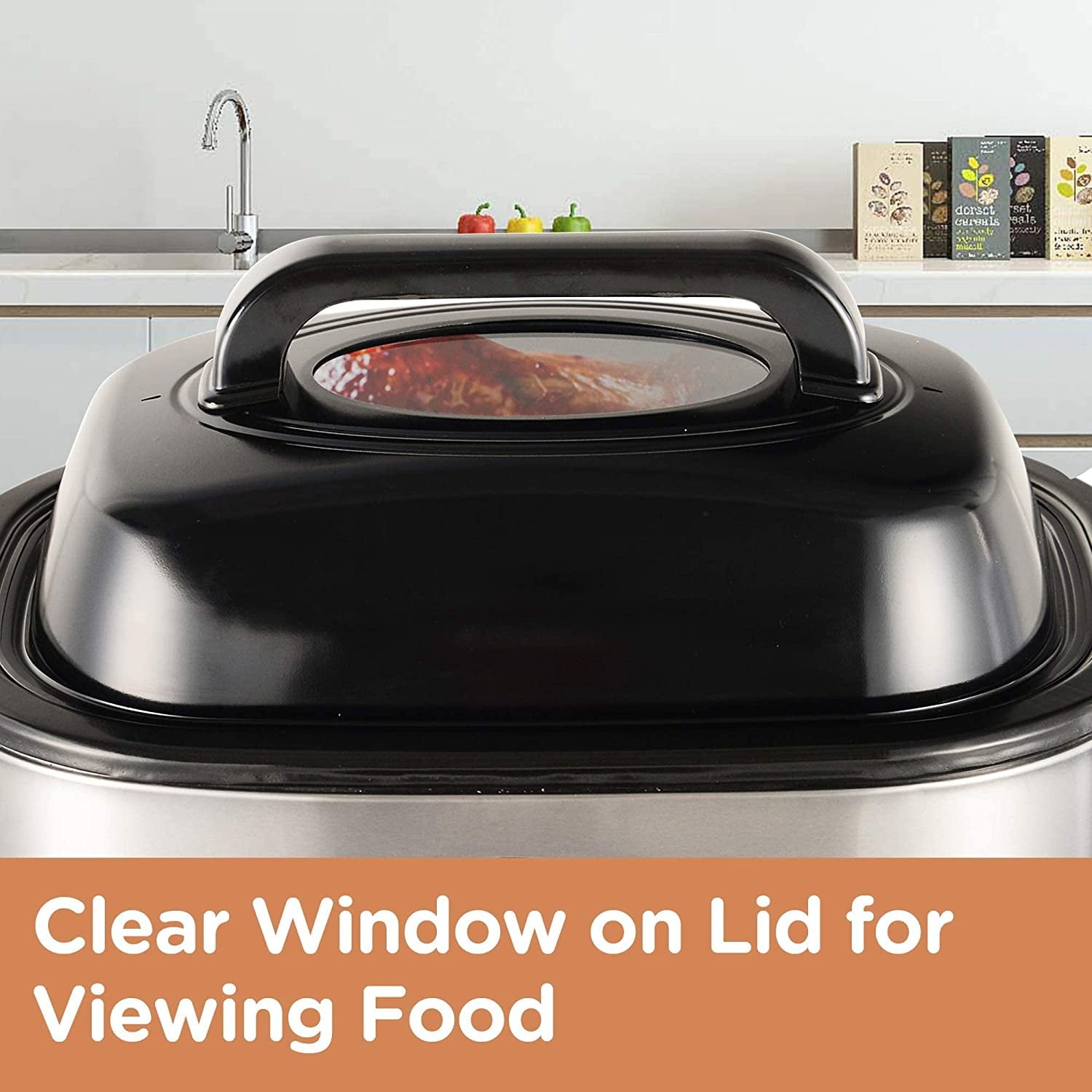 CozyHom 24 Quart Electric Roaster Oven Stainless Steel Roaster Oven with Self-Basting Lid Removable Insert Pot, Silver