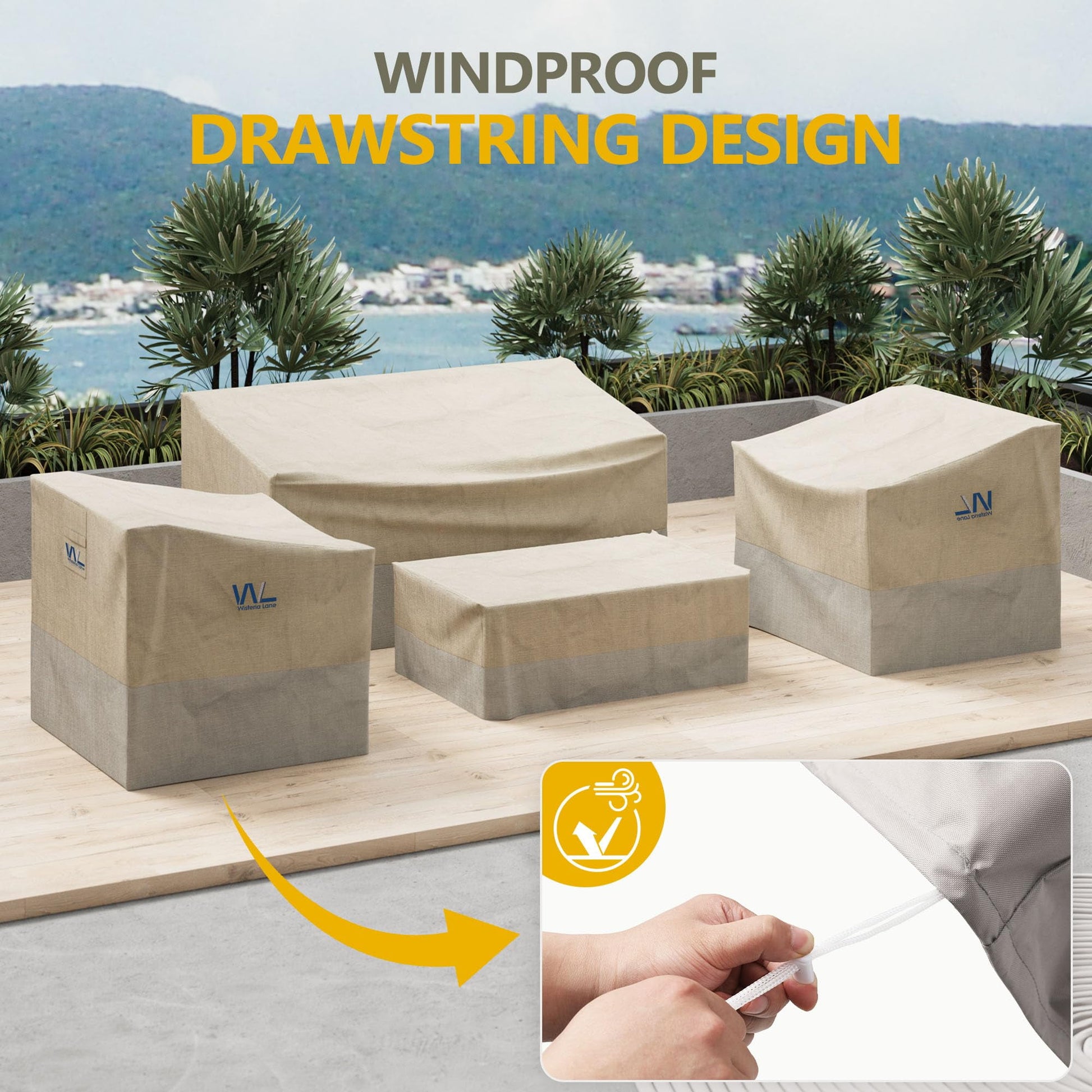 CozyHome 4 Pieces Outdoor Furniture Cover with Air Vent, Heavy Duty Oxford Outdoor Couch Covers, Water-Resistant, Weatherproof, Patio Covers for Loveseat, Coffee Table, Chair, Beige & Grey