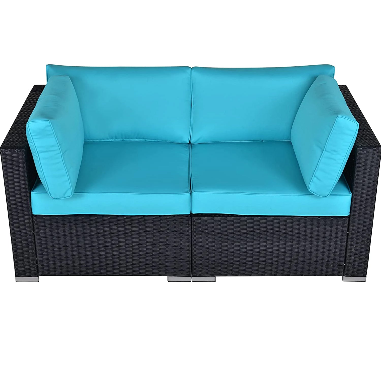 DIY Outdoor Loveseat Patio Furniture Corner Sofa, 2 Piece Wicker Rattan Outdoor Sectional Sofa Set with Removable Turquoise Cushions,Extra Chair for SUNVIVI OUTDOOR Furniture