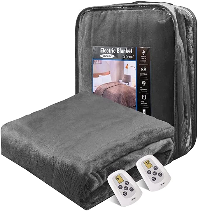 King and Queen Size Electric Blanket Heated Dual Control, 5 Years Warranty, 10 Heat Settings, 12 Hours Auto Off, Machine Washable, ETL Certified, Overheating Protection