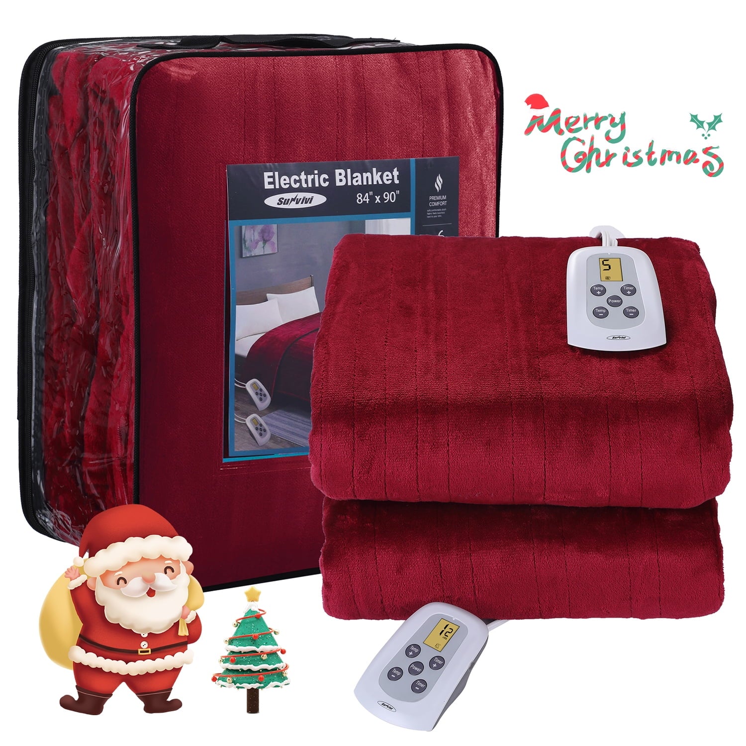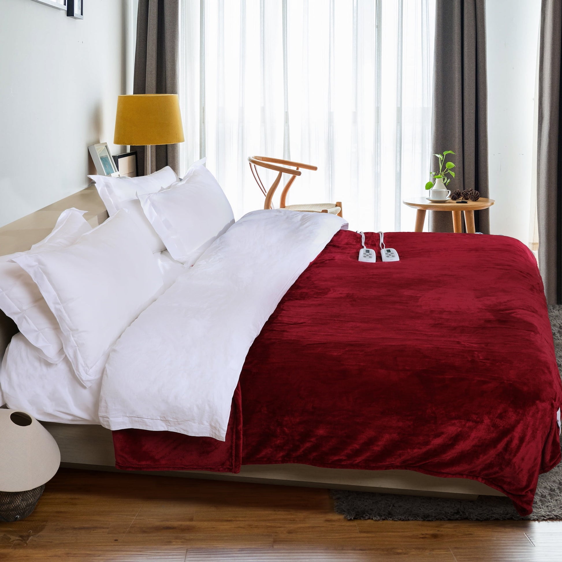 Heated Blanket Queen Size, Electric Blanket Dual Control Soft Velvet, 10 Heat Settings, 12 Hours Auto Off, Overheat Protection, Red
