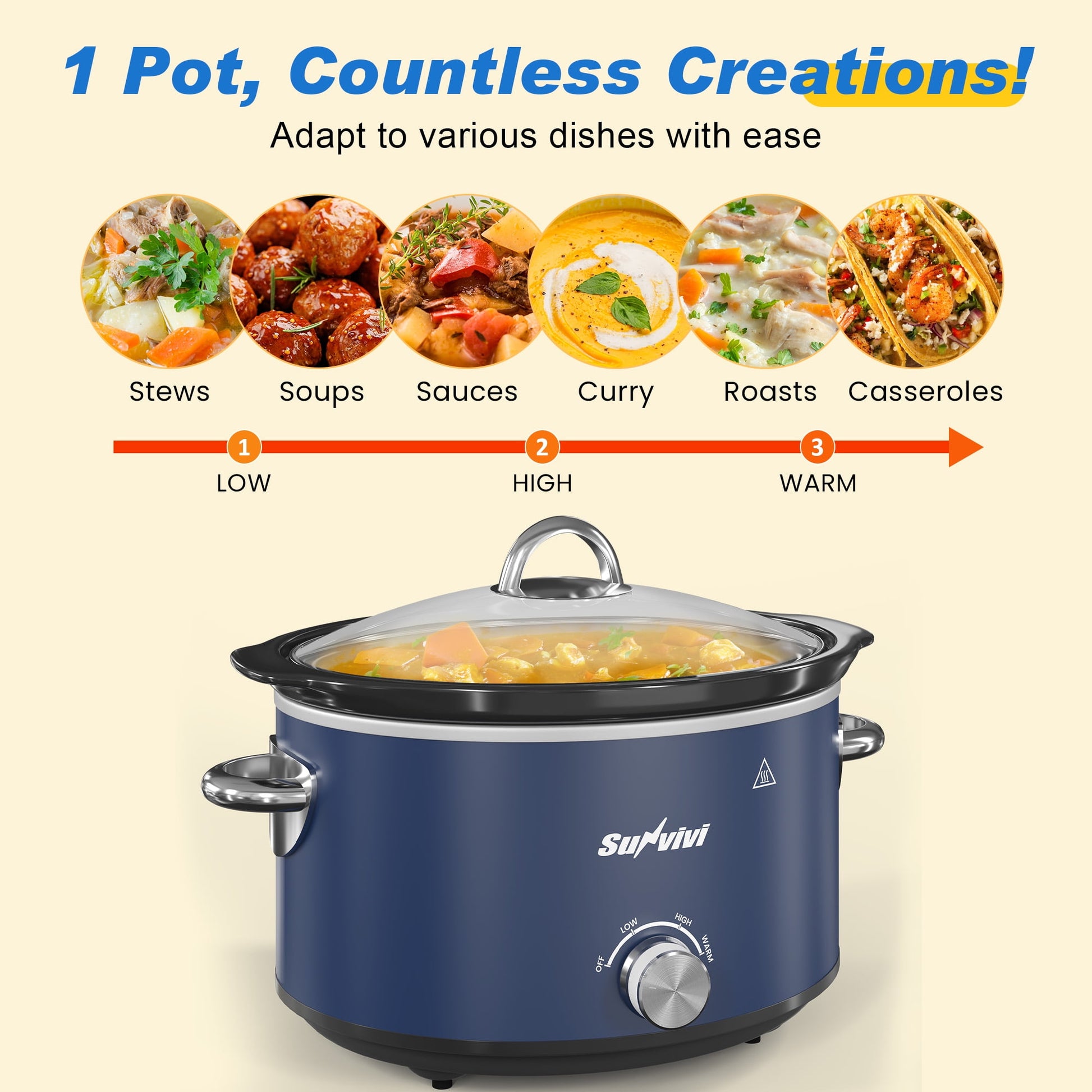 Cook Simply, Enjoy Deeply ¡ª This compact slow cooker turns everyday meals into moments of comfort. With three intuitive heat settings, it effortlessly handles everything from slow-simmered stews to warm dips for gatherings. Thoughtfully designed with safety features and easy cleanup, it lets you cook with confidence and share with ease. Perfect for couples, small families, or cozy nights in ¡ª it¡¯s not just about cooking, but creating warmth, connection, and joy in every meal.