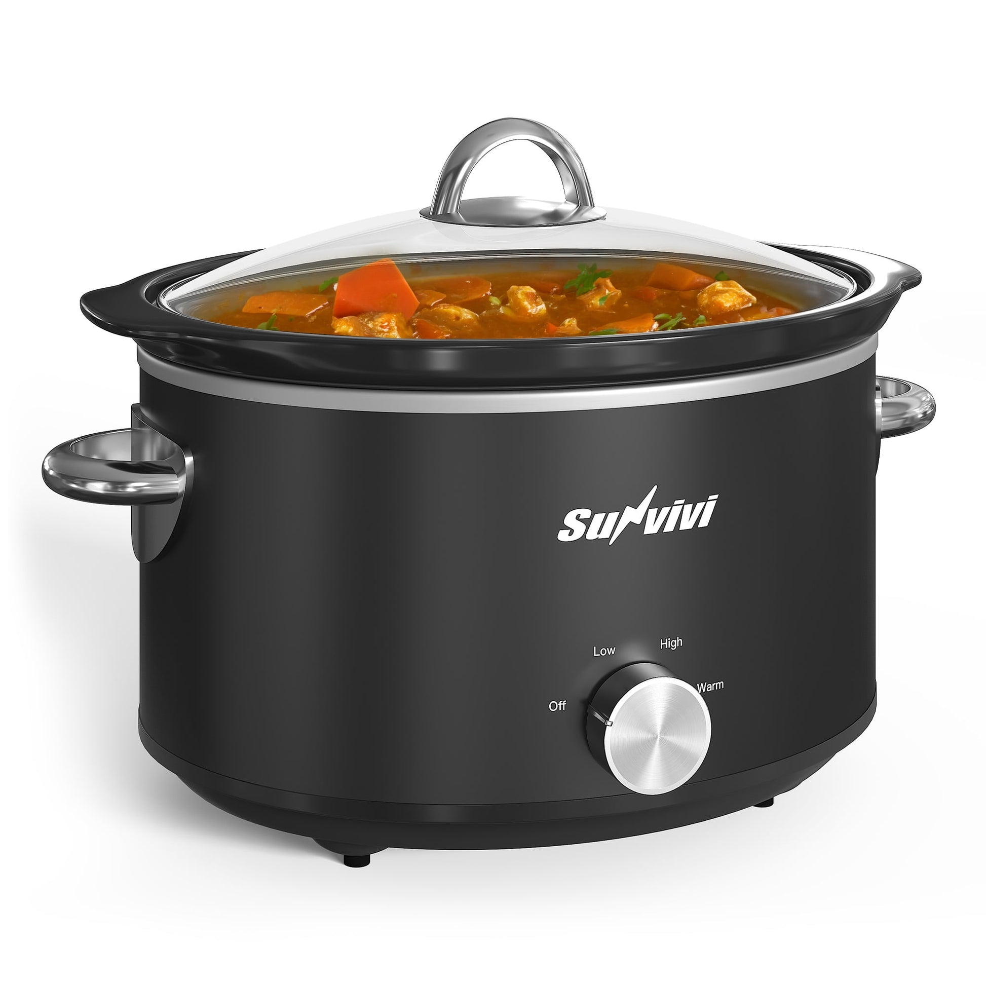 Heynemo 4QT Compact Slow Cooker & Food Warmer with 3 Temperature Settings, Dishwasher Safe - Black