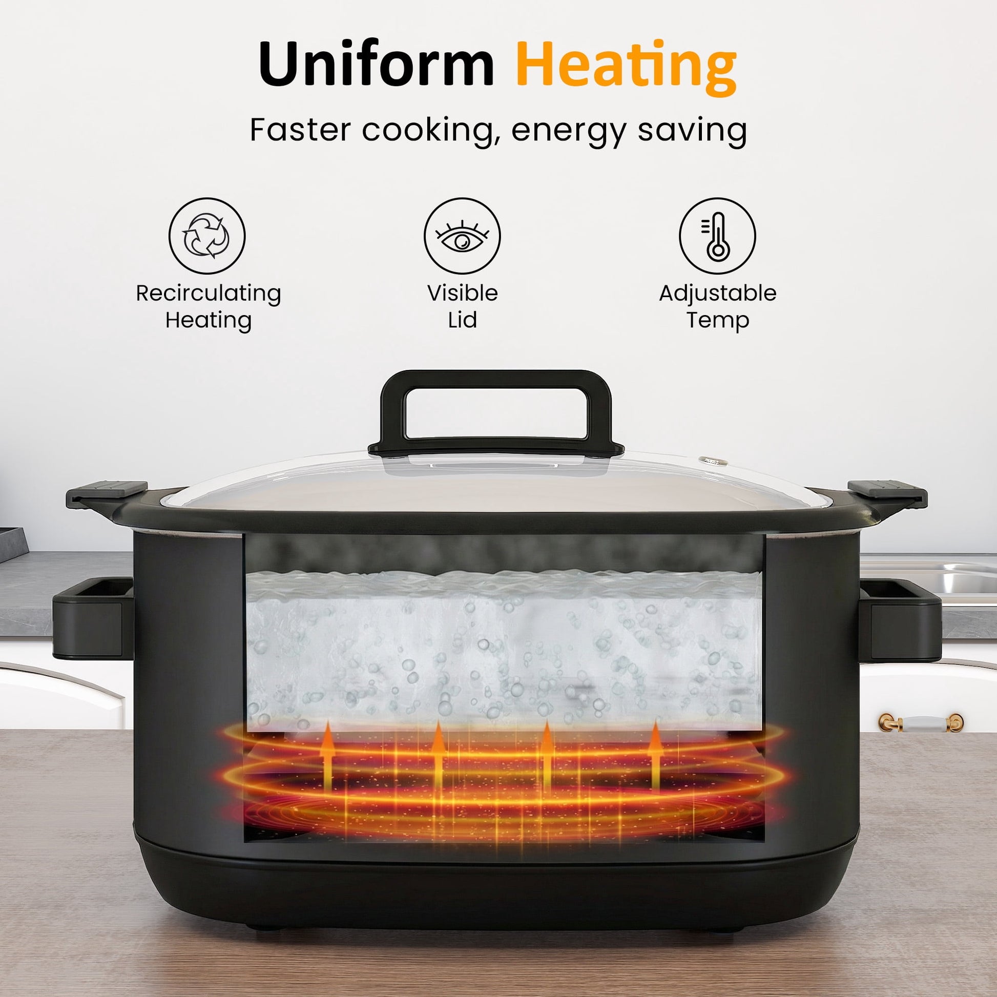 and delay start, dinner fits your schedule, not the other way around. The generous 6.5QT capacity makes family meals and gatherings effortless, while even heating and a nonstick interior ensure reliable results and easy cleanup. From busy weeknights