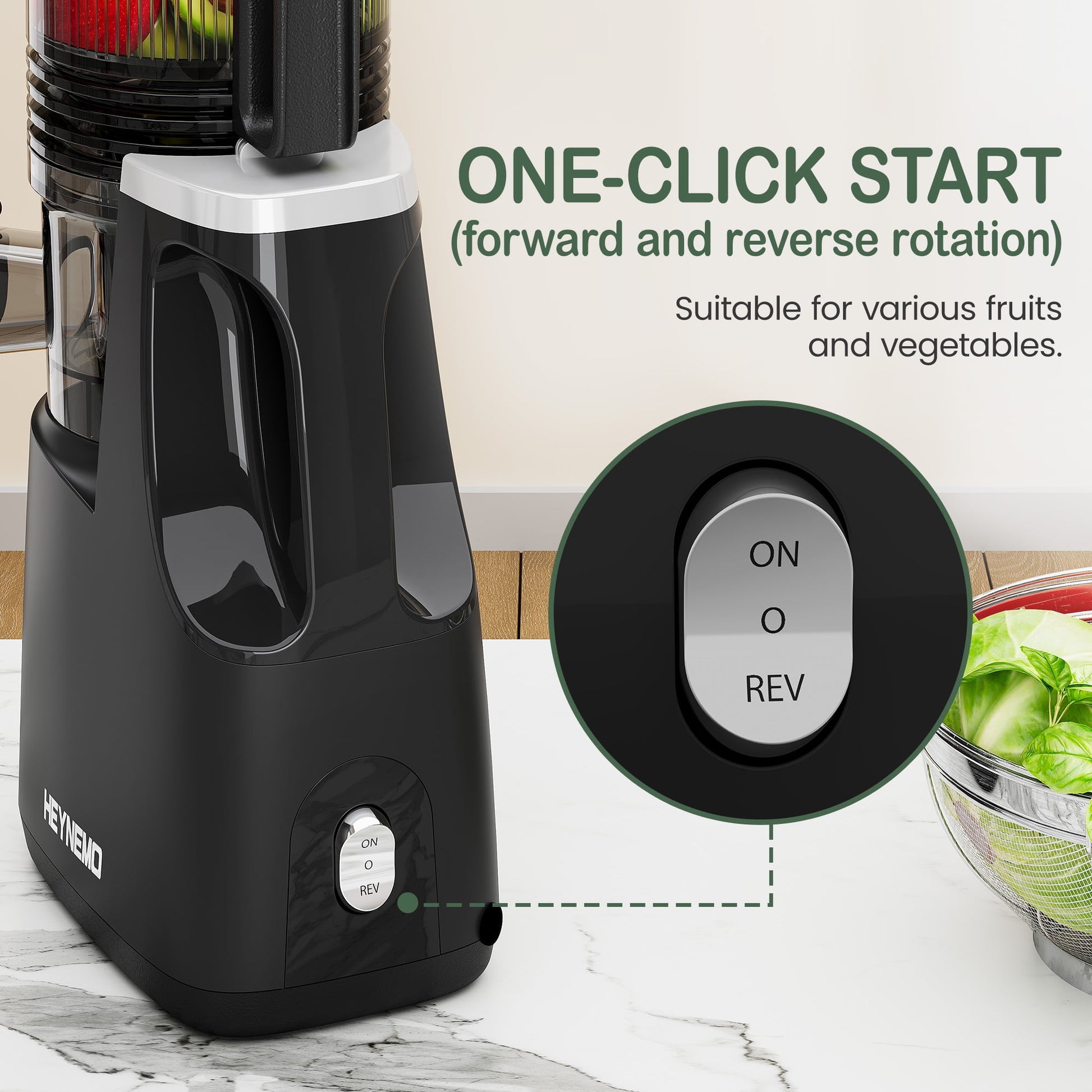 Heynemo Cold Press Juicer Machine, 5.9" Wide Feed Chute, Masticating, Dual-Layer Strainer - Black