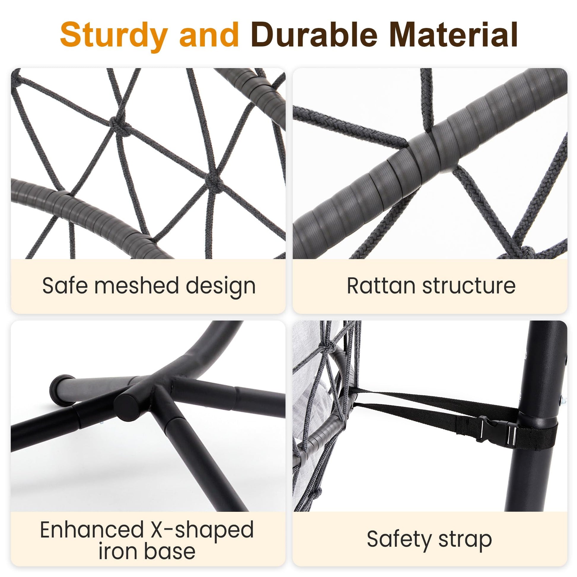 Heynemo Hanging Egg Chair with Stand Boho Style - 350lb Capacity - Black & Gray