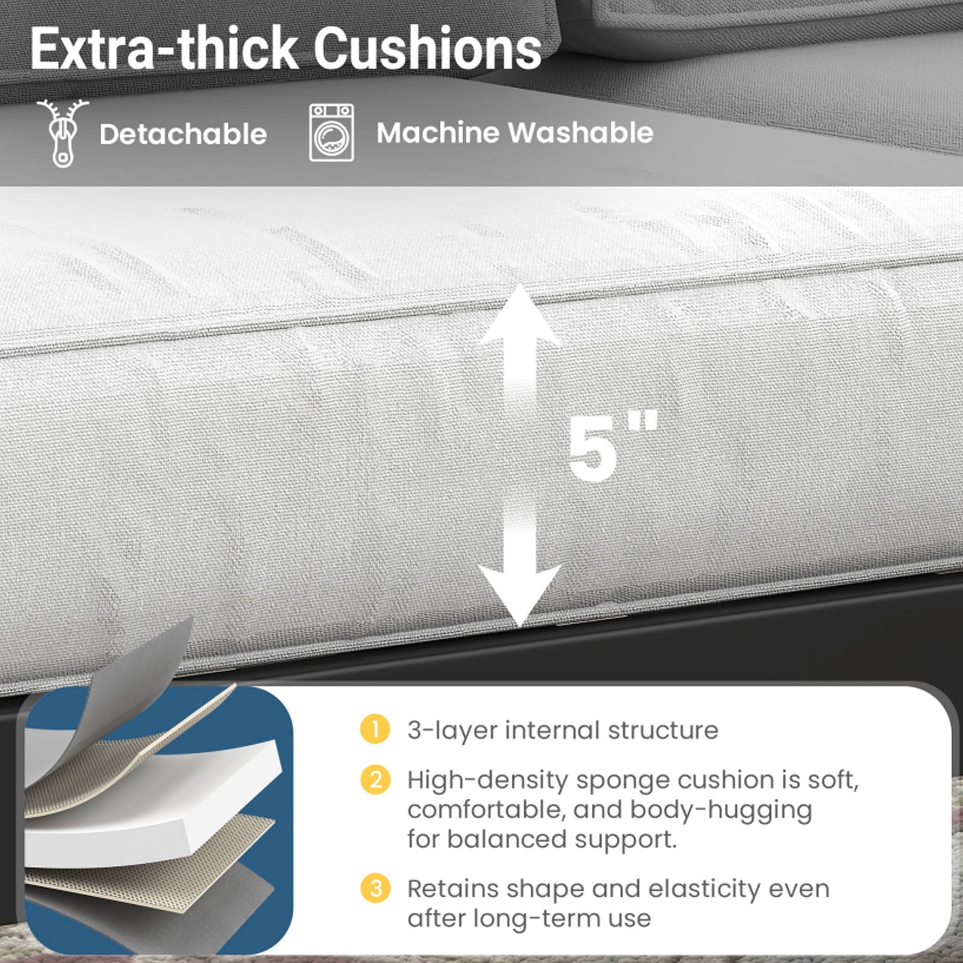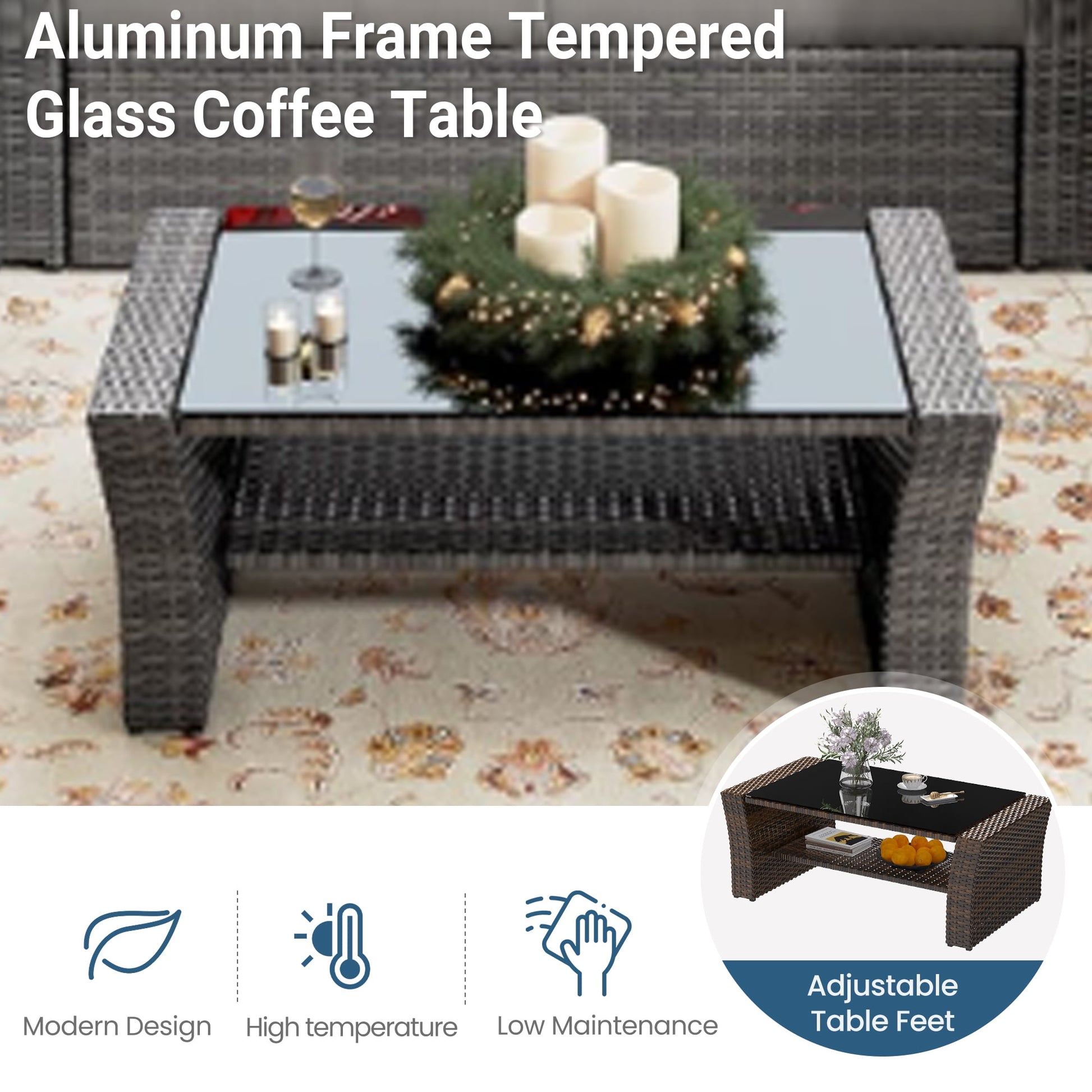 This outdoor patio furniture set is made of a high-quality upgraded sponge. It is well compatible with your skin with a clean and comfortable surface and soft texture. Also, the wicker sectional sofa cushion cover is removable and washable for easy maintenance. Enjoy an incomparable comfortable backyard experience.