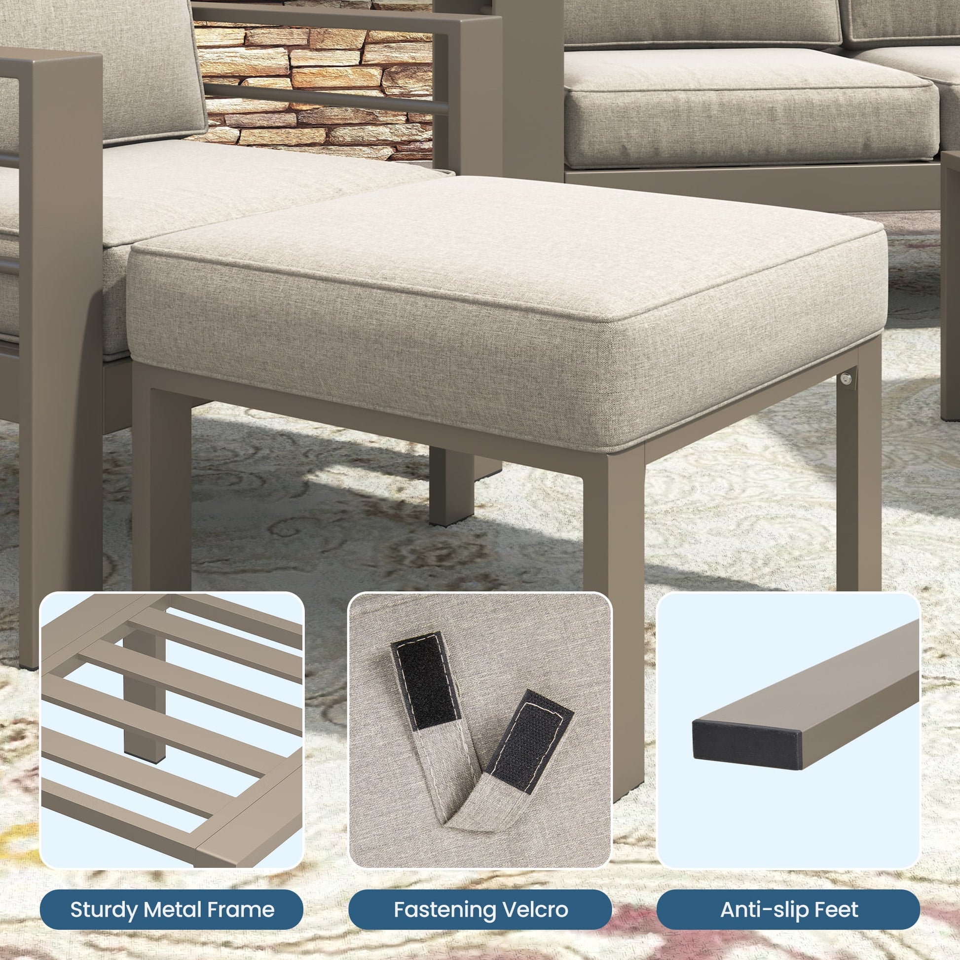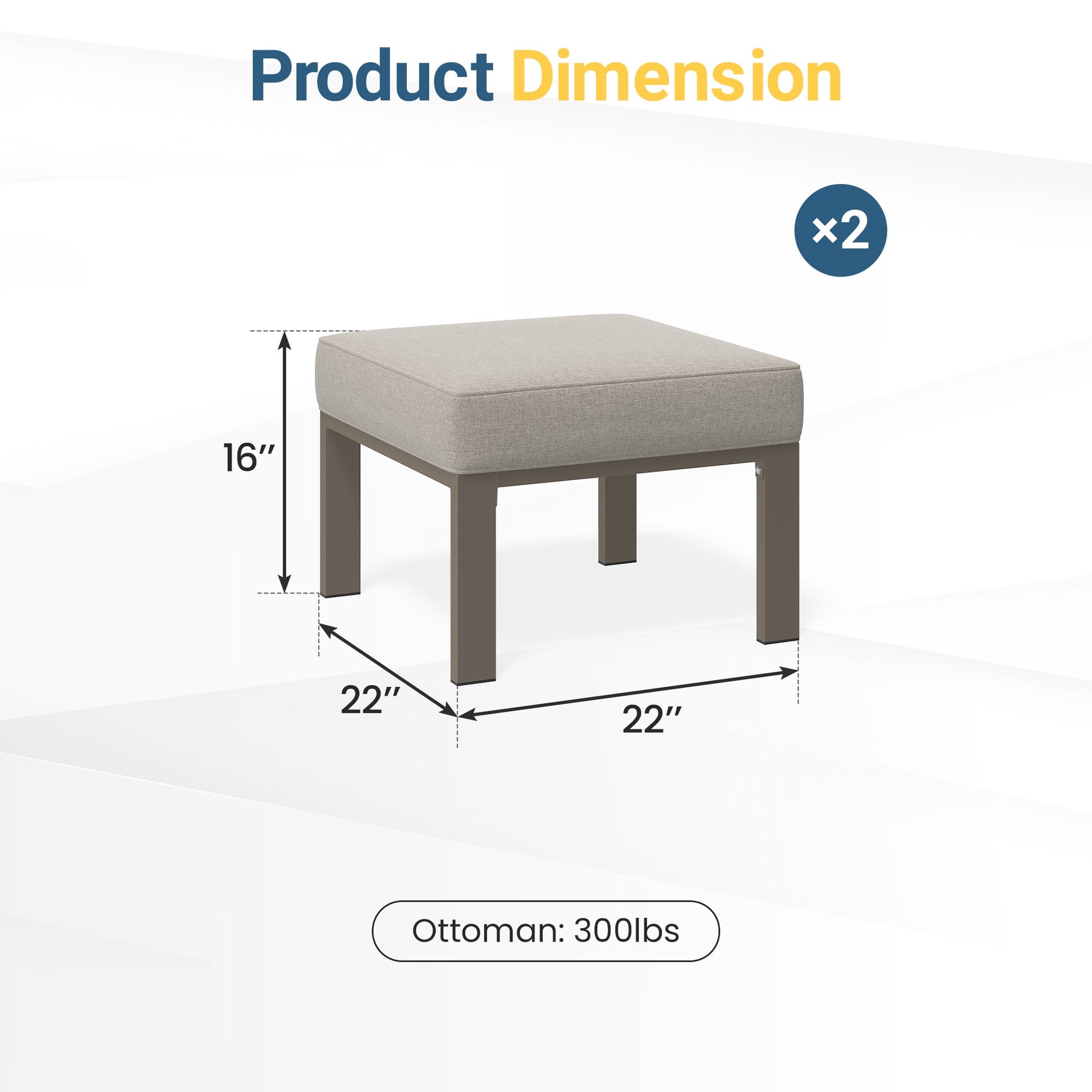 Heynemo Patio Furniture Footstools Metal Ottomans Set of 2, Metal Outdoor Ottomans with Upgraded Cushions, All-weather Outdoor Footrest Seat for Balcony, Garden, Deck, Backyard, Beige