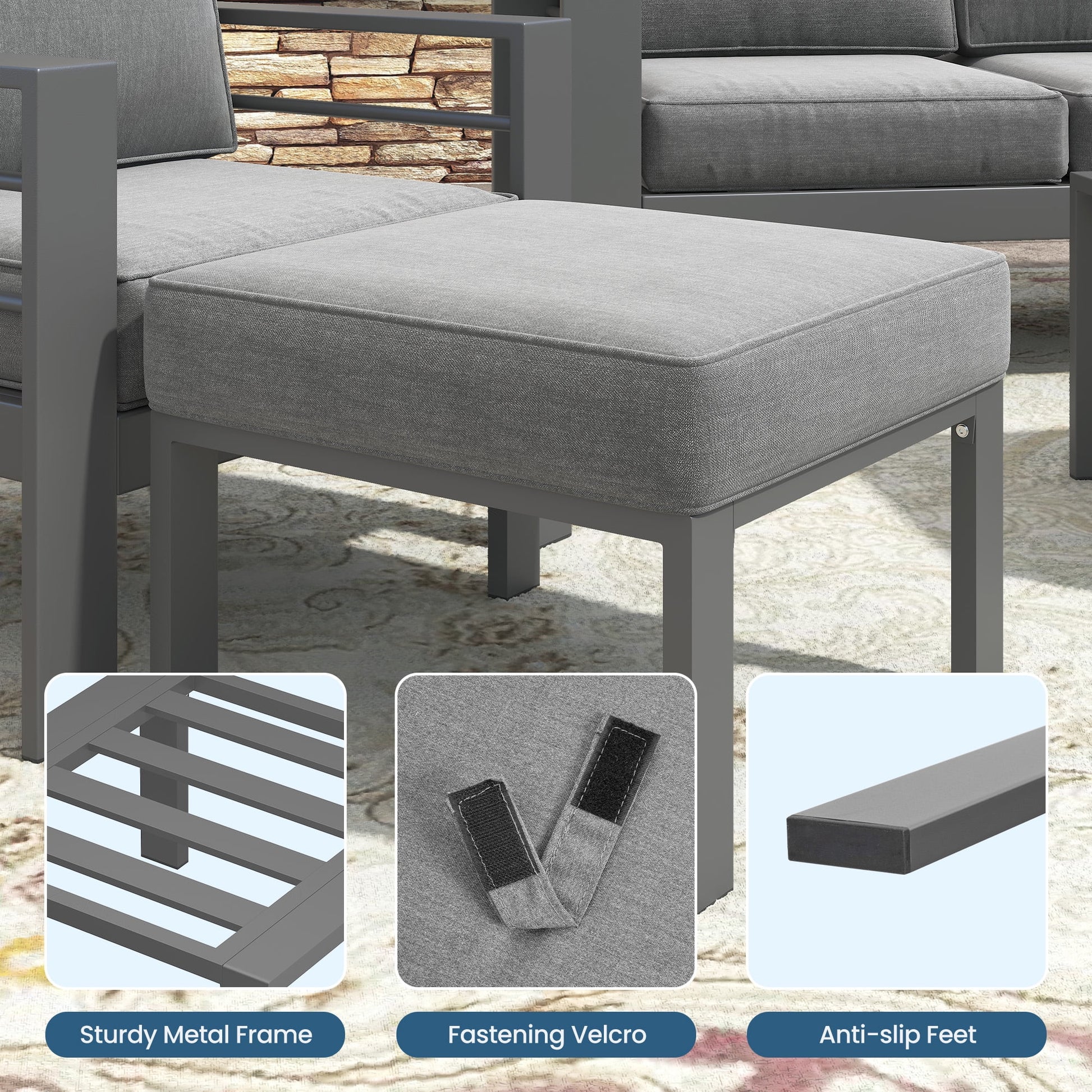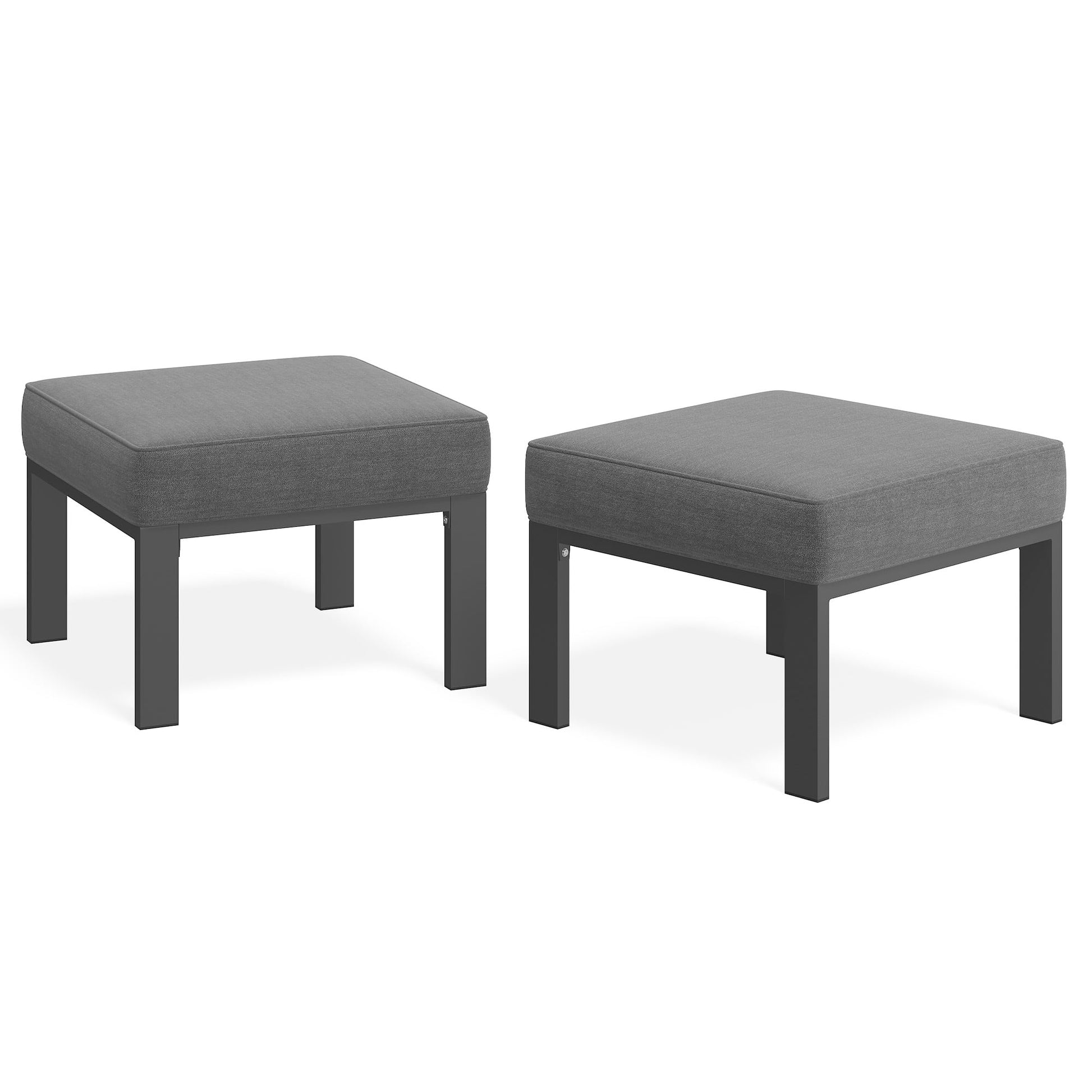 Heynemo Patio Furniture Footstools Metal Ottomans Set of 2, Metal Outdoor Ottomans with Upgraded Cushions, All-weather Outdoor Footrest Seat for Balcony, Garden, Deck, Backyard, Grey