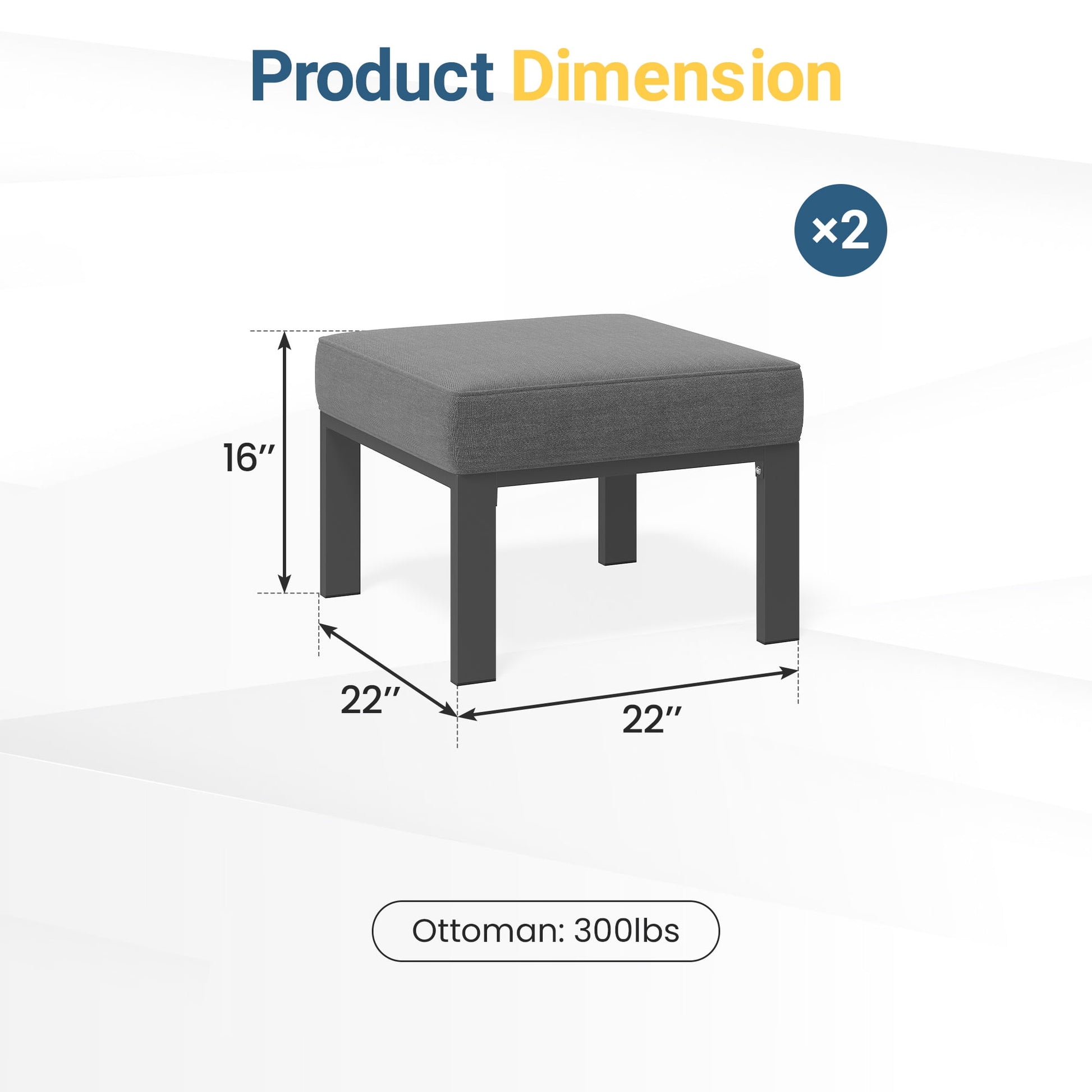 Enhance your outdoor comfort with this stylish and long-lasting outdoor metal ottoman, crafted with an all-iron frame for long-lasting stability, even in strong winds. The 5'' thick cushion, made from 260G deluxe Olefin fabric, offers a soft, skin-friendly feel that molds to your body, while vibrant colors stay bright under the sun. Perfect for patios, gardens, or poolside relaxation, its versatile design blends seamlessly into indoor spaces like living rooms or offices. Easy to clean with a damp cloth and simple to assemble in under 30 minutes, this patio footstool combines practicality and elegance. For any questions, we¡¯re here to help within 24 hours!