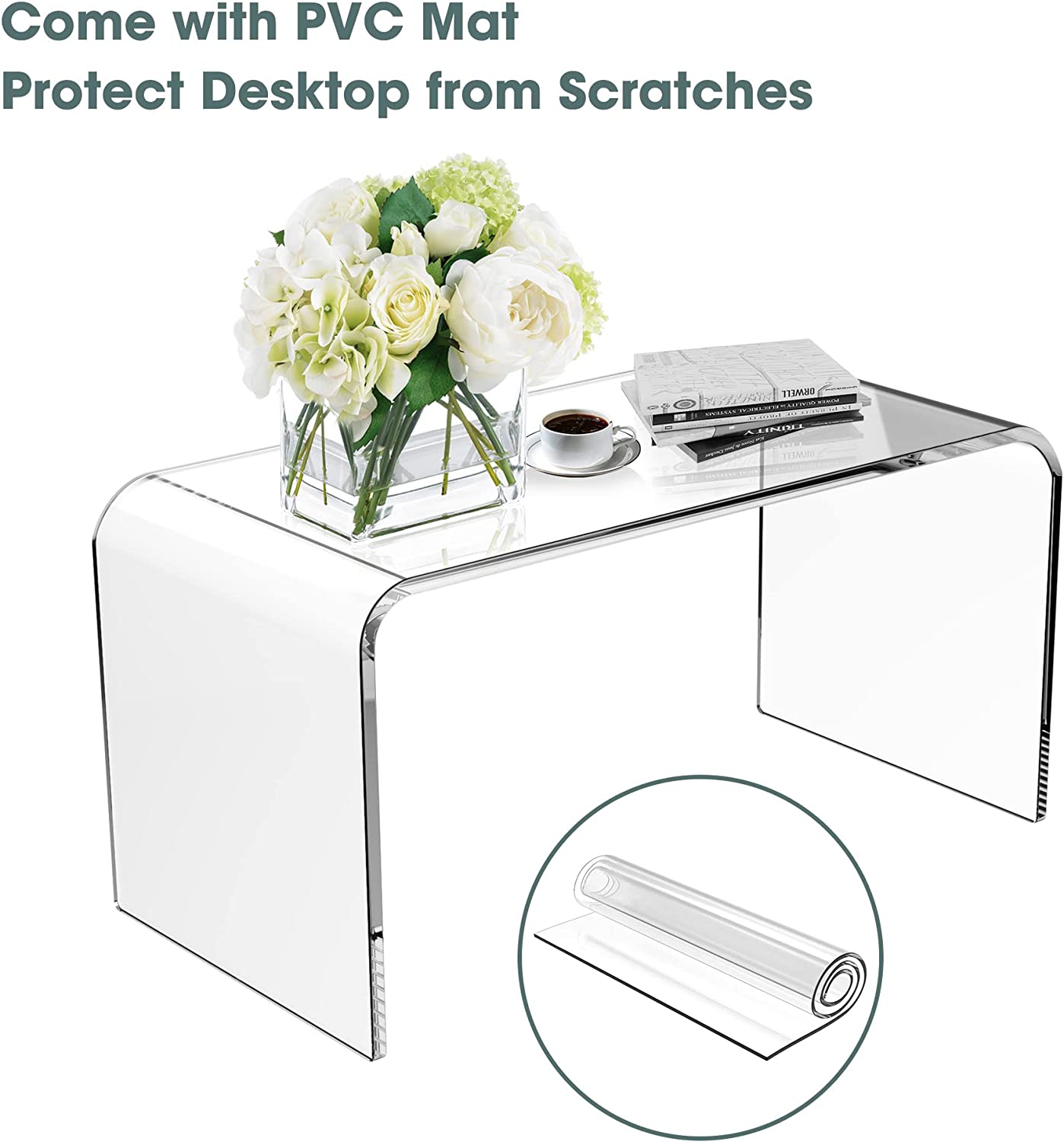 EASY MAINTENANCEThe acrylic coffee table comes with 1.5mm thick PVC Table Cover Protector. Clear mat protect this acrylic coffee table against scratches, scuffs, stains etc. Acrylic material is stain and water-resistant,all you need is a piece of damp cloth and a soft wiping motion to get fingerprints and messes off.