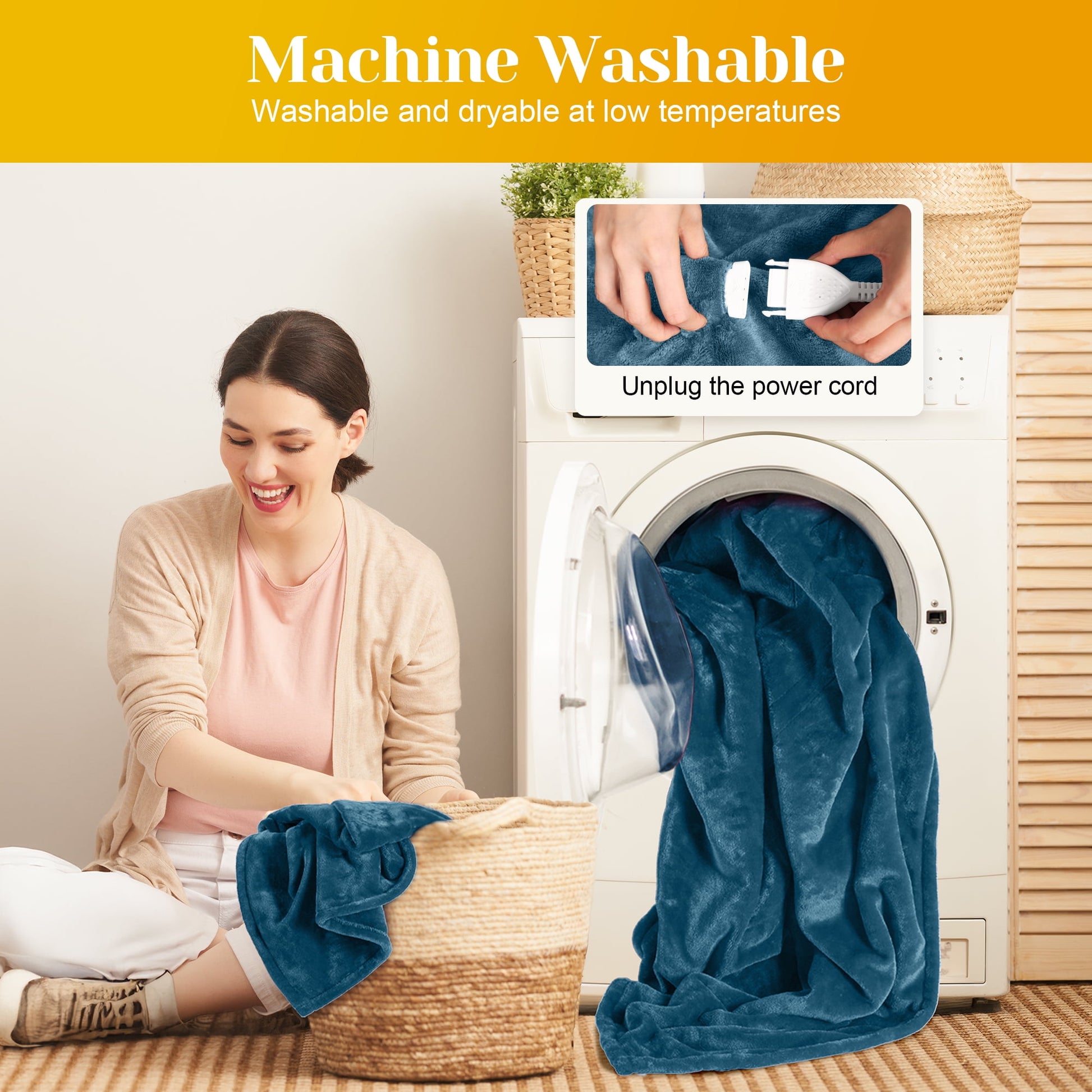 Mayincolor Electric Heated Blanket, 84" x 62" Twin Size Electric Blanket with 10 Heating Levels and 12 Hours Auto-Off, Soft Flannel and Sherp Blanket with ETL & FCC Certification, Blue