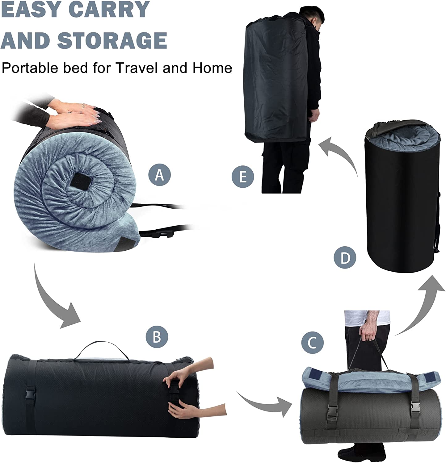 BACKPACK FRIENDLY: There is a buckle on the portable memory foam camping mattress's back, which can be fixed with a buckle when it is rolled. There are also Velcro on the corners of the sheets, which can be used to stitch together multiple sleeping pads.