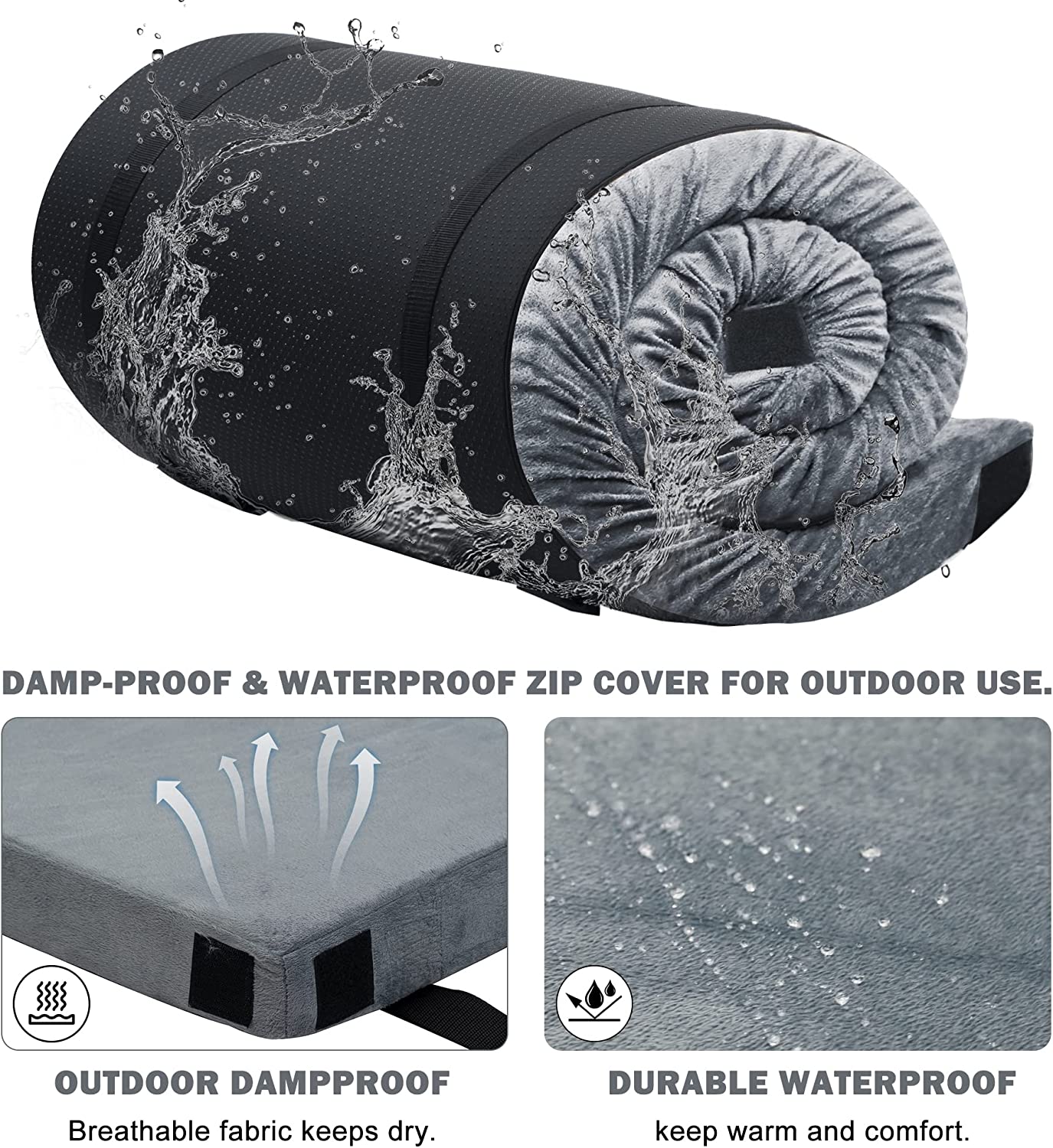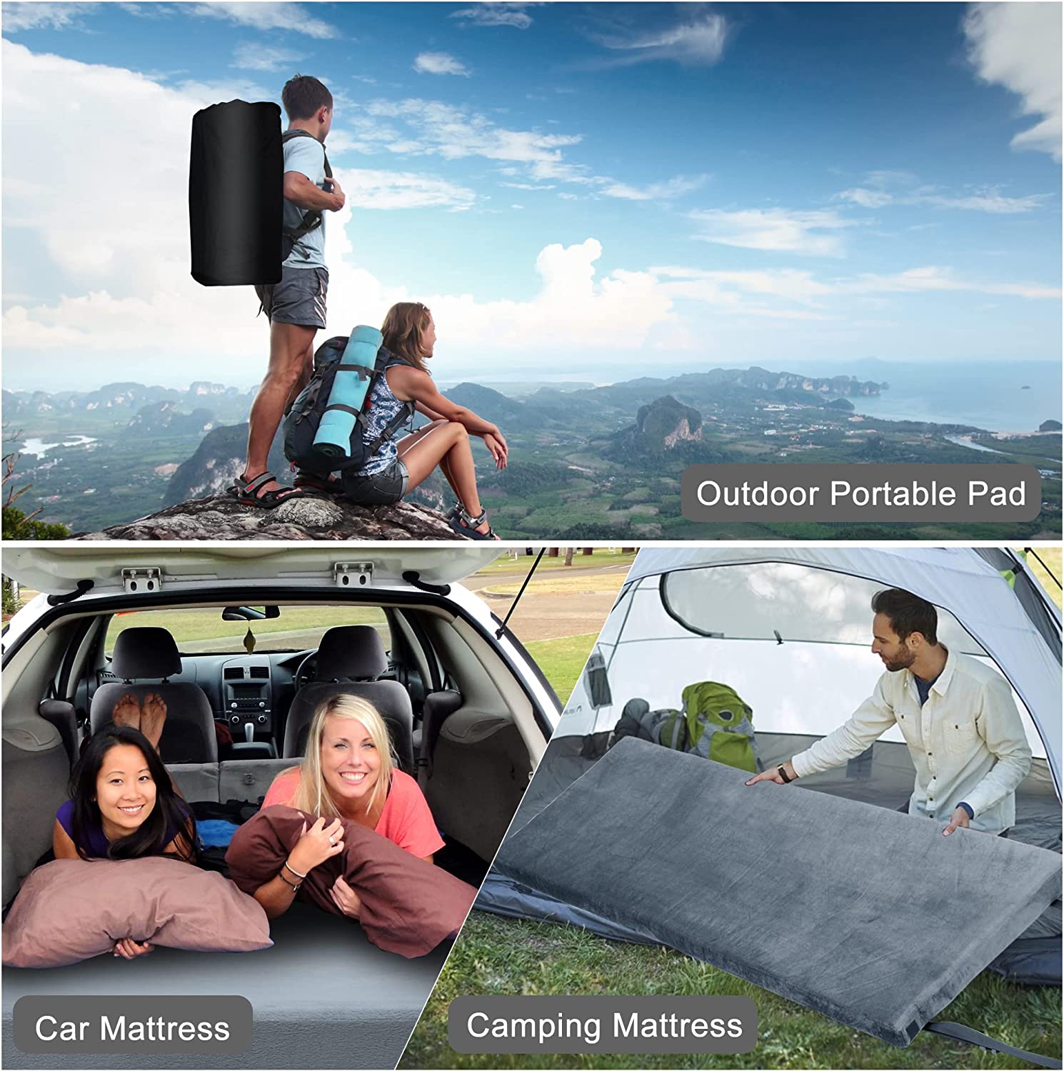 APPLICABLE PLACES: The memory foam camping mattress can be used for outdoor use, hiking, traveling, overnight in a car, climbing, camping, swimming pool, barbecue, park, flat, beach, etc., as well as disaster prevention measures! It can also be used as a simple bed for guests who suddenly move in!