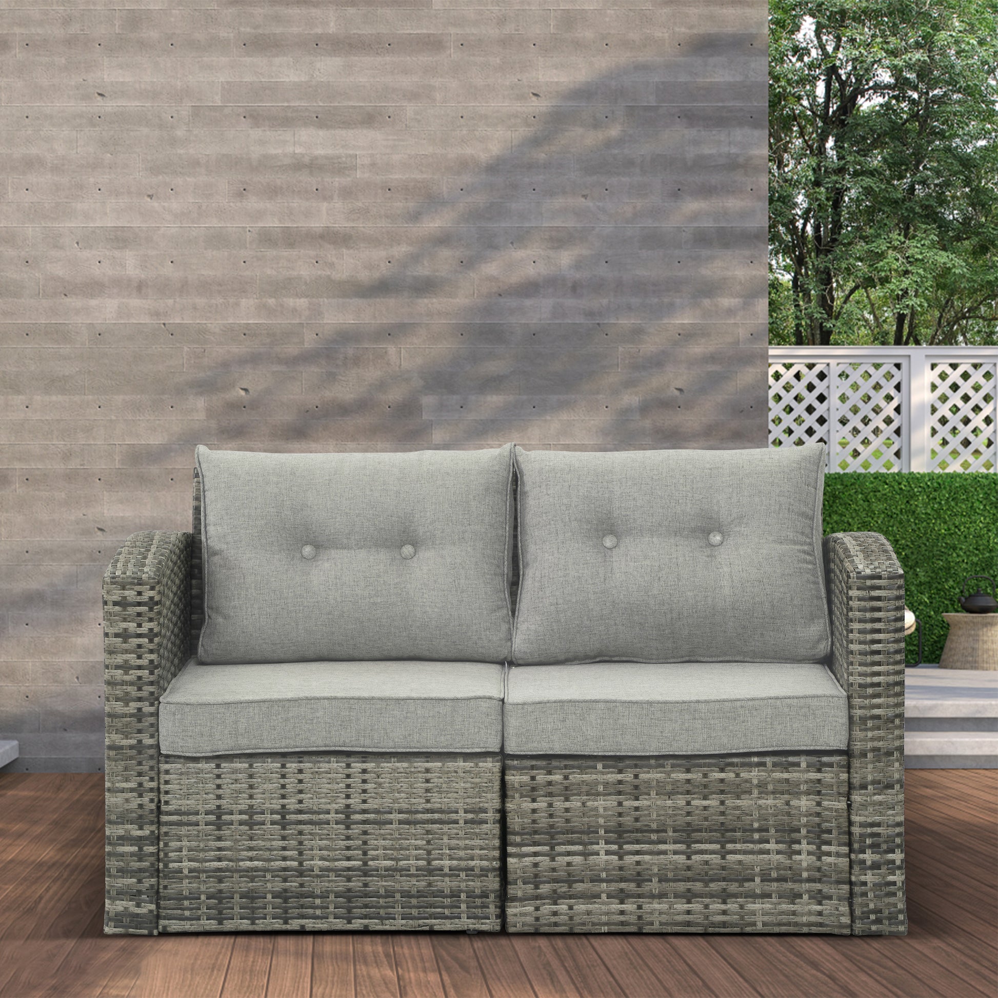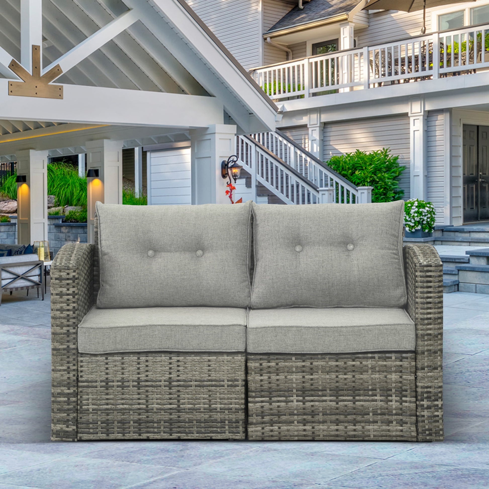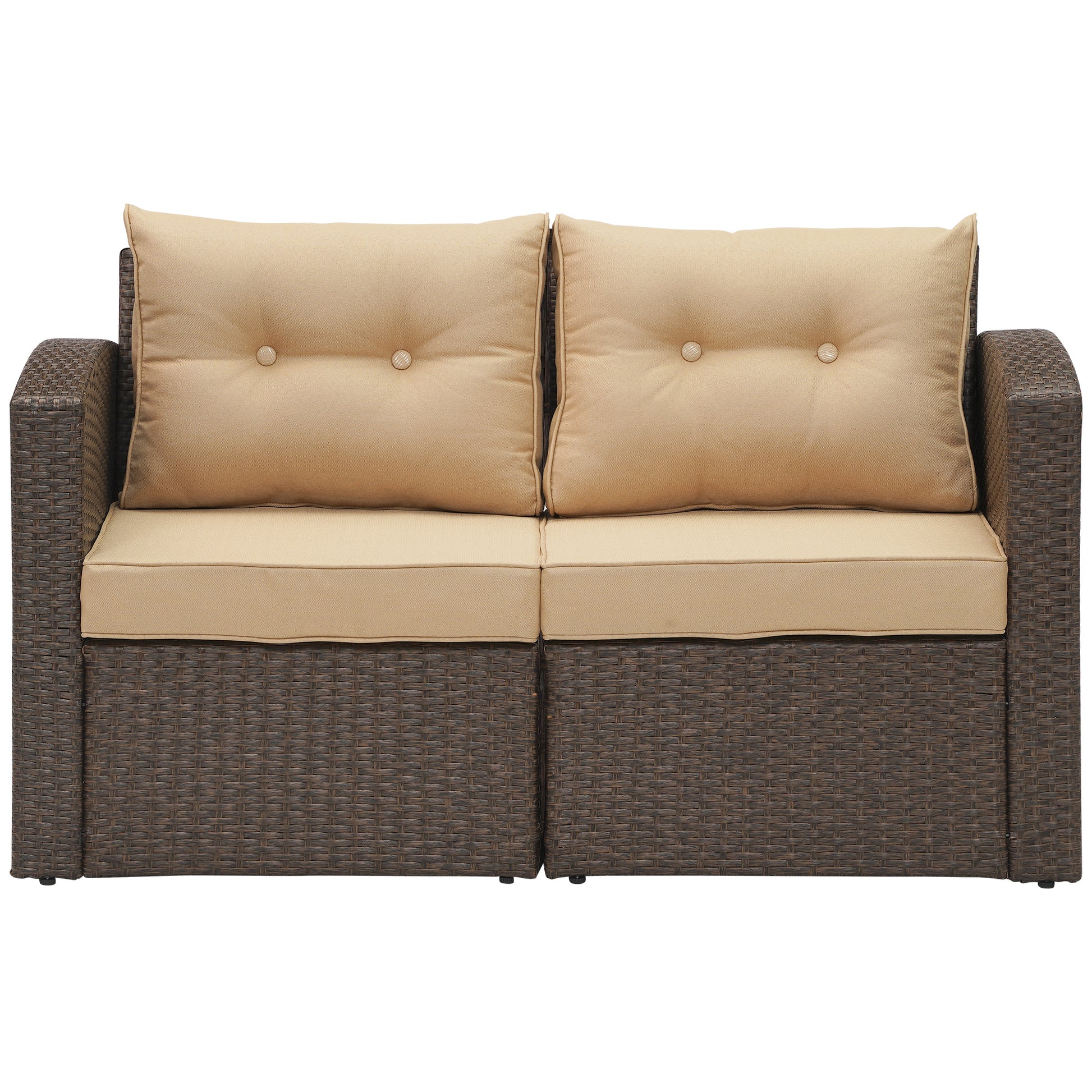 Outdoor Loveseat Patio Furniture Corner Sofa, All-Weather Brown Wicker 2-Piece Rattan Outdoor Sectional Couch Sofa Set with Non-slip Cushions,Aluminum Frame