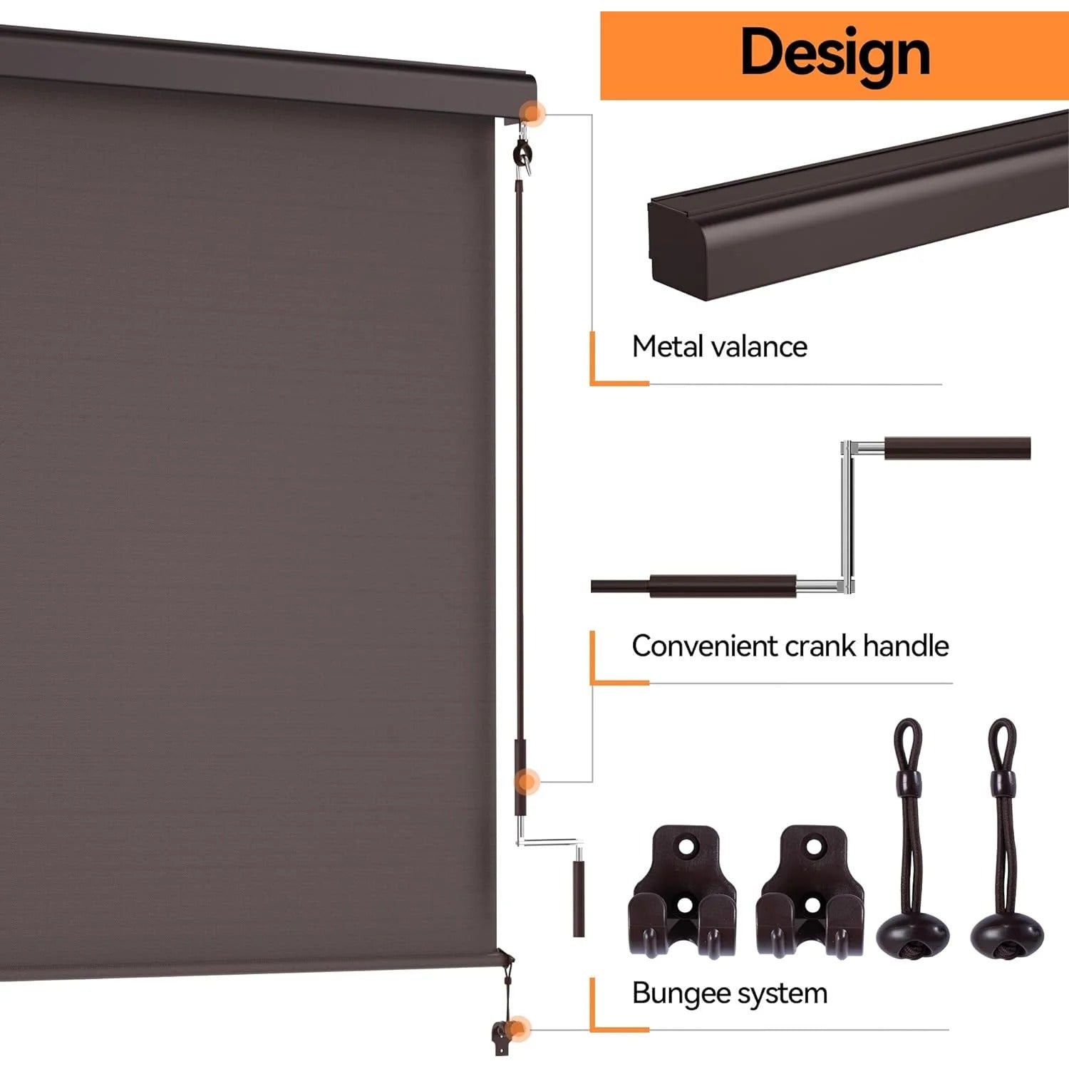 Cordless Crank Handle Design-Safe and Convenient - Abandon the traditional Outdoor Shades with the chain clutch. In order to protect the safety of children and pets, we use crank handle to control the rise and fall of outdoor roller shade, it is more convenient and faster, effectively avoid contact with children and pets.