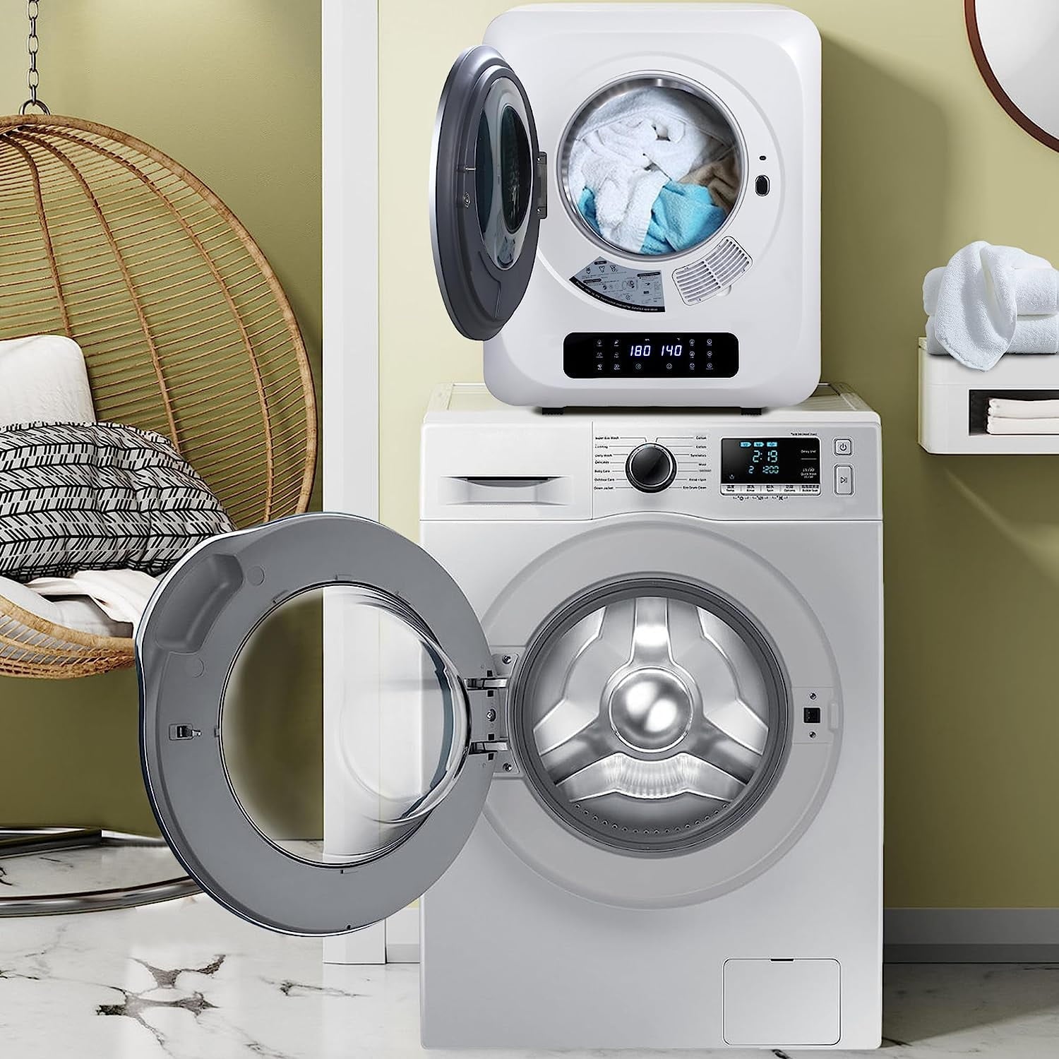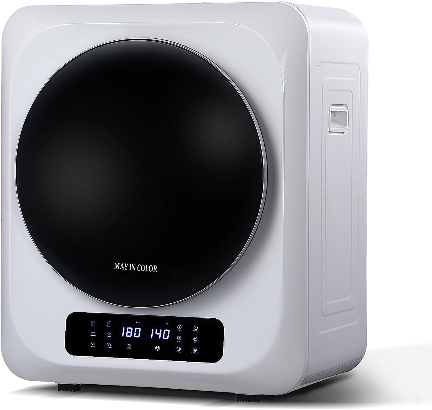 Have you ever been bothered by the humid weather or bacteria accumulated on the clothes? This 1.6 cu. ft compact laundry dryer must be the best assistant to dry and deodorization of your valuable clothes. Thanks to its advanced heating element that accelerates the drying process. Offering a comprehensive range of 6 distinct drying modes, crafted to cater to a variety of fabrics and materials. The humidity sensor that automatically adjusts the drying time based on the moisture levels. Its stainless steel drum rotates bidirectionally, minimizing tangling, wear and tear, leaving your clothes wrinkle-free. Its control panel is equipped with a child lock, which requires pressing for 3 seconds to unlock. The compact clothes dryer also features an automatic power off function - If your little ones open the door while the machine is running, it will shut off to ensure safety. It's easy to move around due to its lightweight and built-in handles. You can place on firm horizontal ground or rack mounted or wall mounted. It's a nice choice for individuals residing in apartments, dormitories, or RVs.