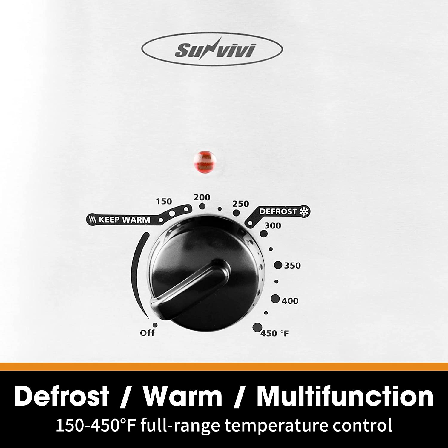 Warm / Defrost / Multifunction - With this unique and innovative Defrost setting, you can take your turkey from frozen to roasted in hours - not days ! Don't worry about preparing food too early to make the food cold---Warming setting keeps dinner at ideal serving temperature. 150-450??F Full-Range Temperature Control, providing versatile cooking options for roasting, baking and slow cooking.