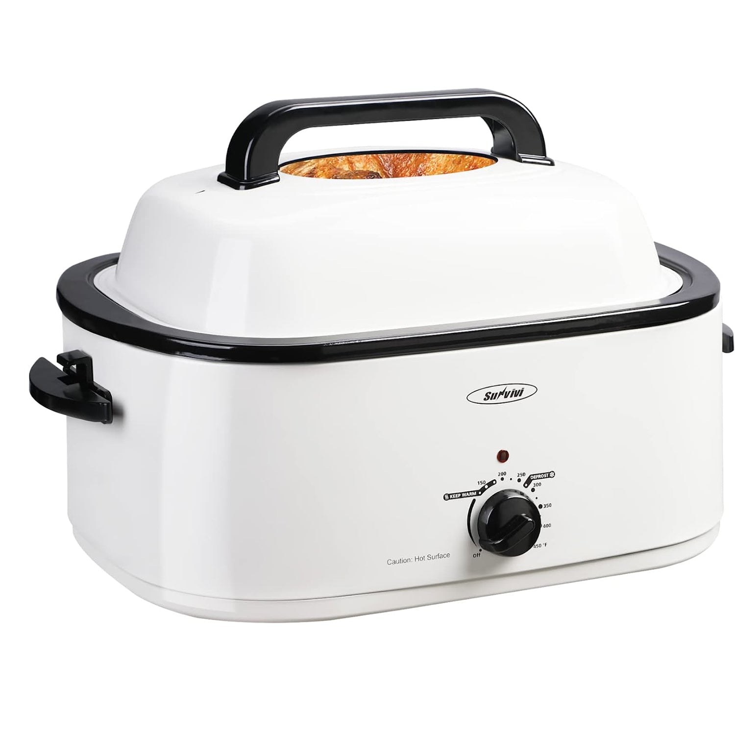 Convenient Visible lid design- The unique Visible lid of the Sunvivi 24 quart electric roaster oven, reduce the need to open the lid during cooking.Reduce the risk of being scalded by superheated steam,and keeps the turkey from contact with the air, maintains a constant temperature, and cooks with a great taste.