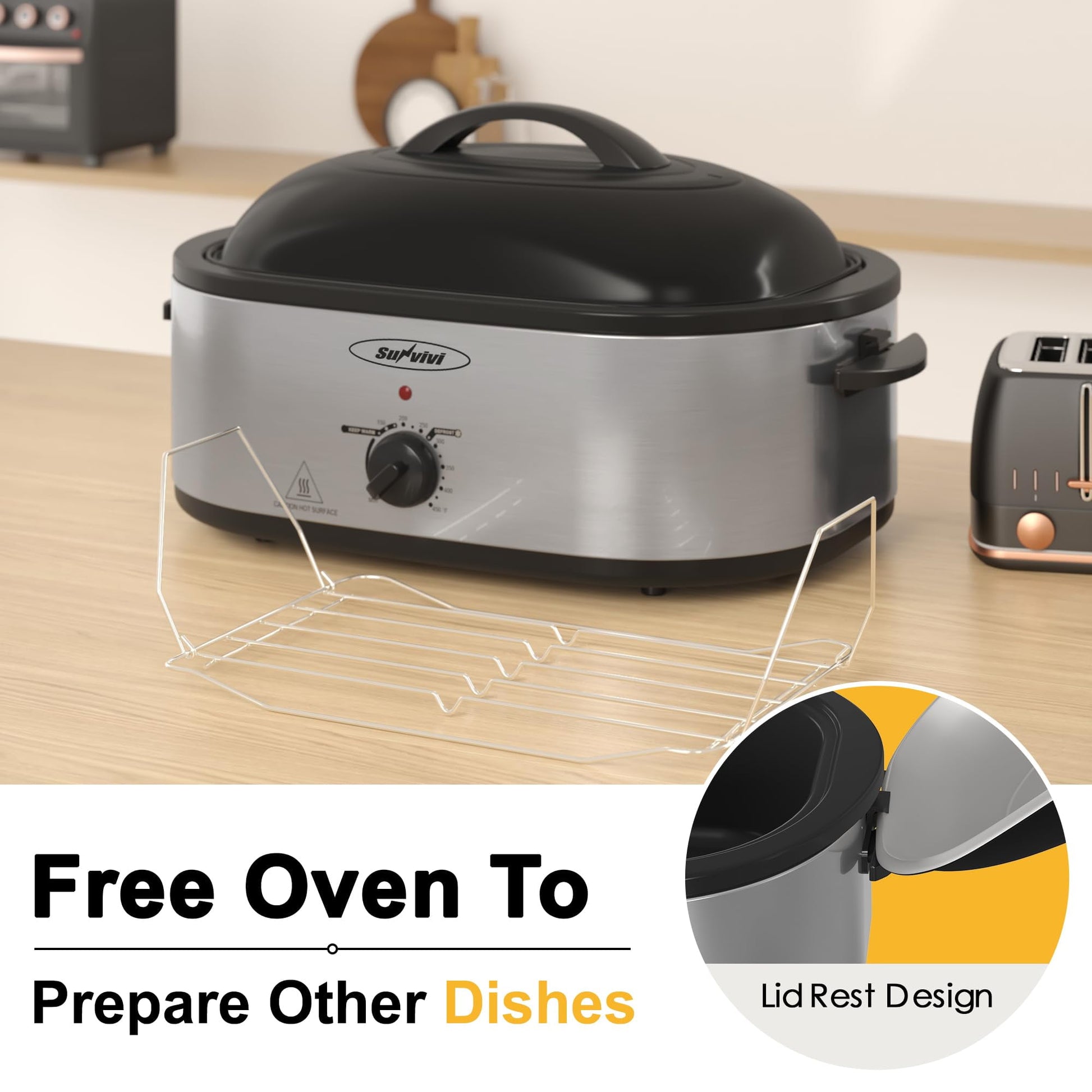 If you want to make a BROWN, JUICY,CRISPY roasted turkey, please choose Sunvivi.The Sunvivi 20 quart turkey roaster oven offers a variety of conveniences for the everyday chef. 20qt roaster oven fits a turkey up to 24 pounds.You can use this roaster as an energy-efficient alternative to turning on the full-size oven, or as