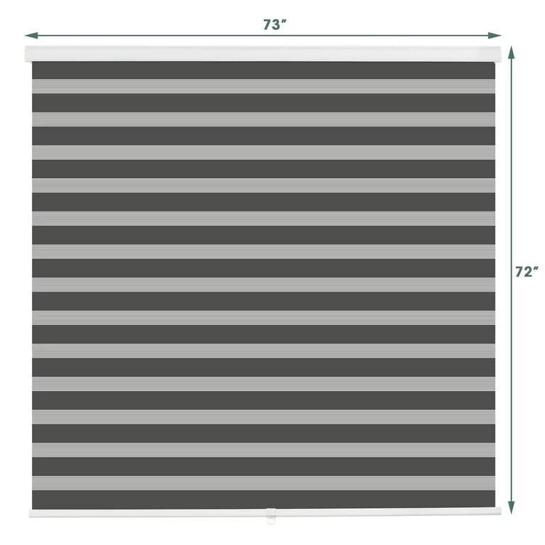Royalcraft Cordless Zebra Blinds for Windows,73" W x 72" H Grey Dual Layer Zebra Roller Shades Blinds for Windows, Sheer or Privacy Light Control, Day and Night Window Shades for Living Rome, Office