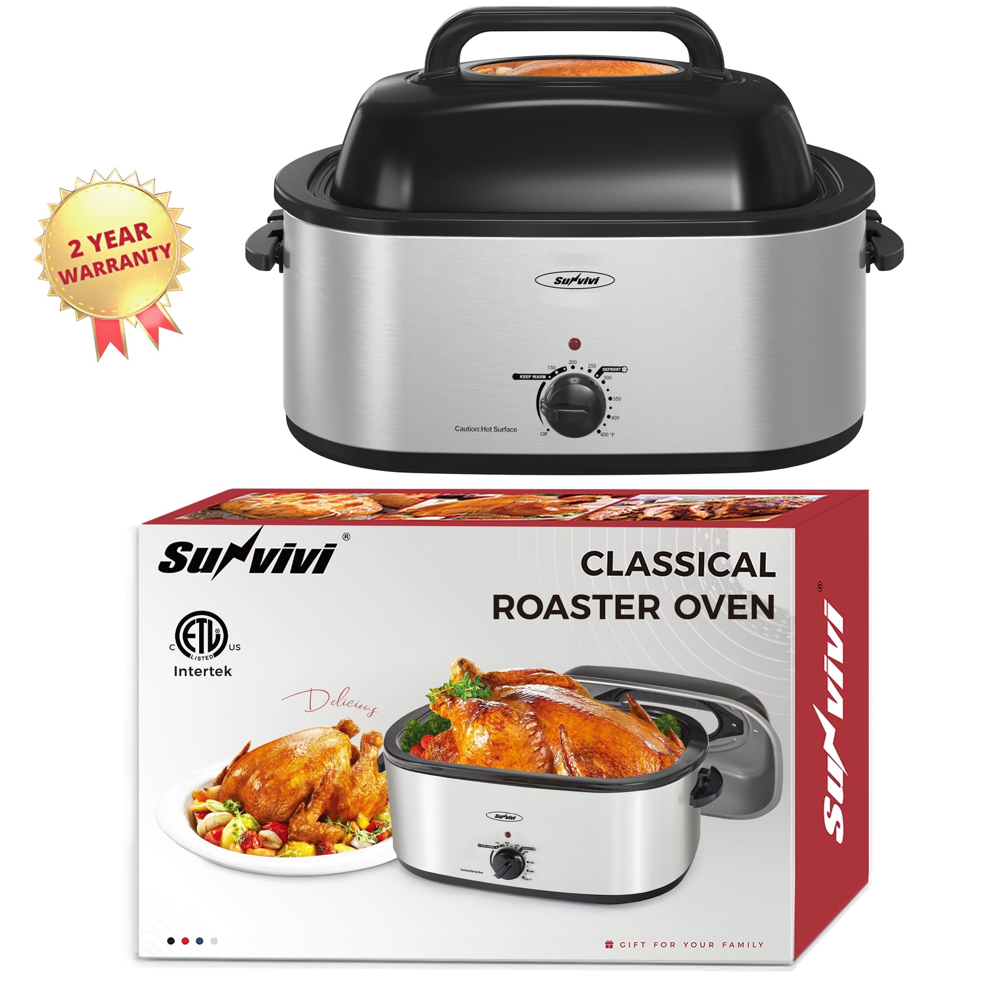 Prepare tender turkey, slow-cooked stews, and more with this stainless steel roaster oven. Sunvivi self-basting roaster are simple to use, helping you make holiday and special occasion meals that are moist, tender, and delicious easily. You could save time and energy with this multi-roaster. Adjustable temperature control from 150o to 450oF lets you do everything from keeping a side dish warm to roasting a large turkey. This electric Turkey roaster oven includes a removable stainless steel inner rack to easily lift out heavy items. After the meal is complete, simply remove the enameled steel baking pan for easy clean up. So, let's get cooking! It's time to explore all the wonderful ways to get the most out of your roaster oven for years to come.