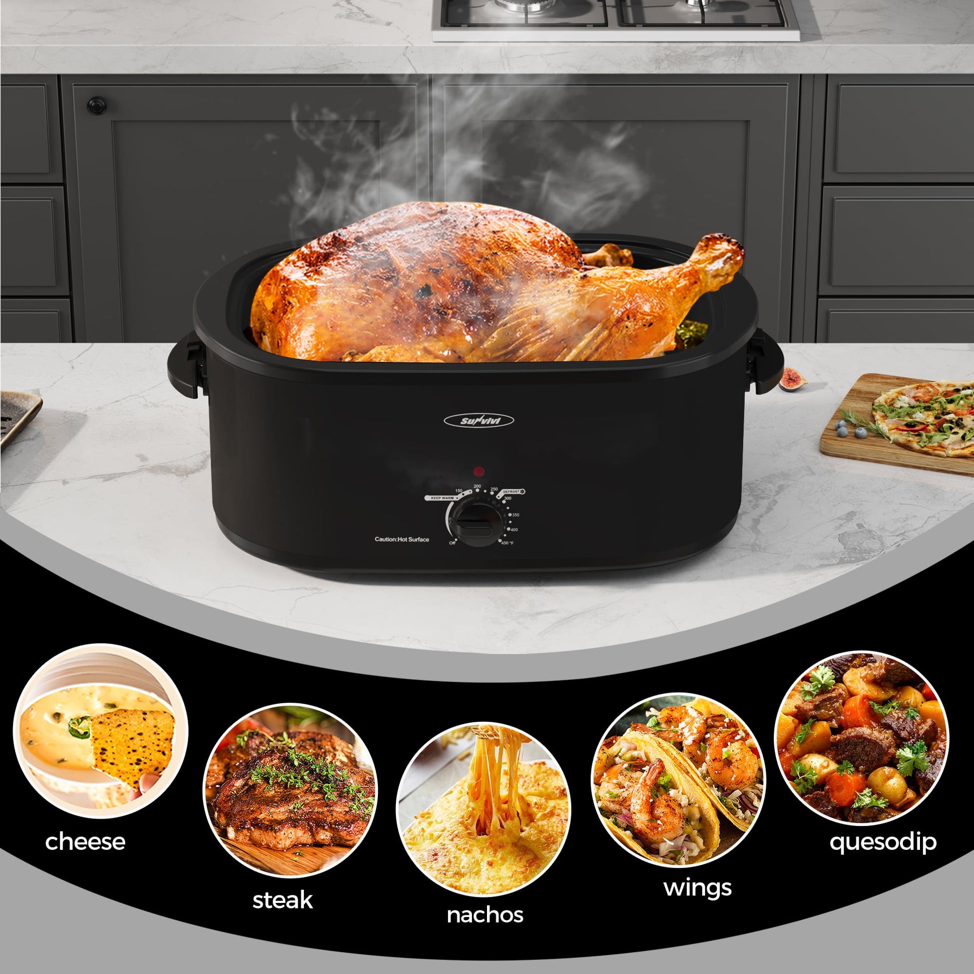 If you want to make a BROWN, JUICY,CRISPY roasted turkey, please choose Sunvivi.The Sunvivi turkey roaster oven offers a variety of conveniences for the everyday chef.You can use this roaster as an energy-efficient alternative to turning on the full-size oven, or as extra cooking space during the holidays.
