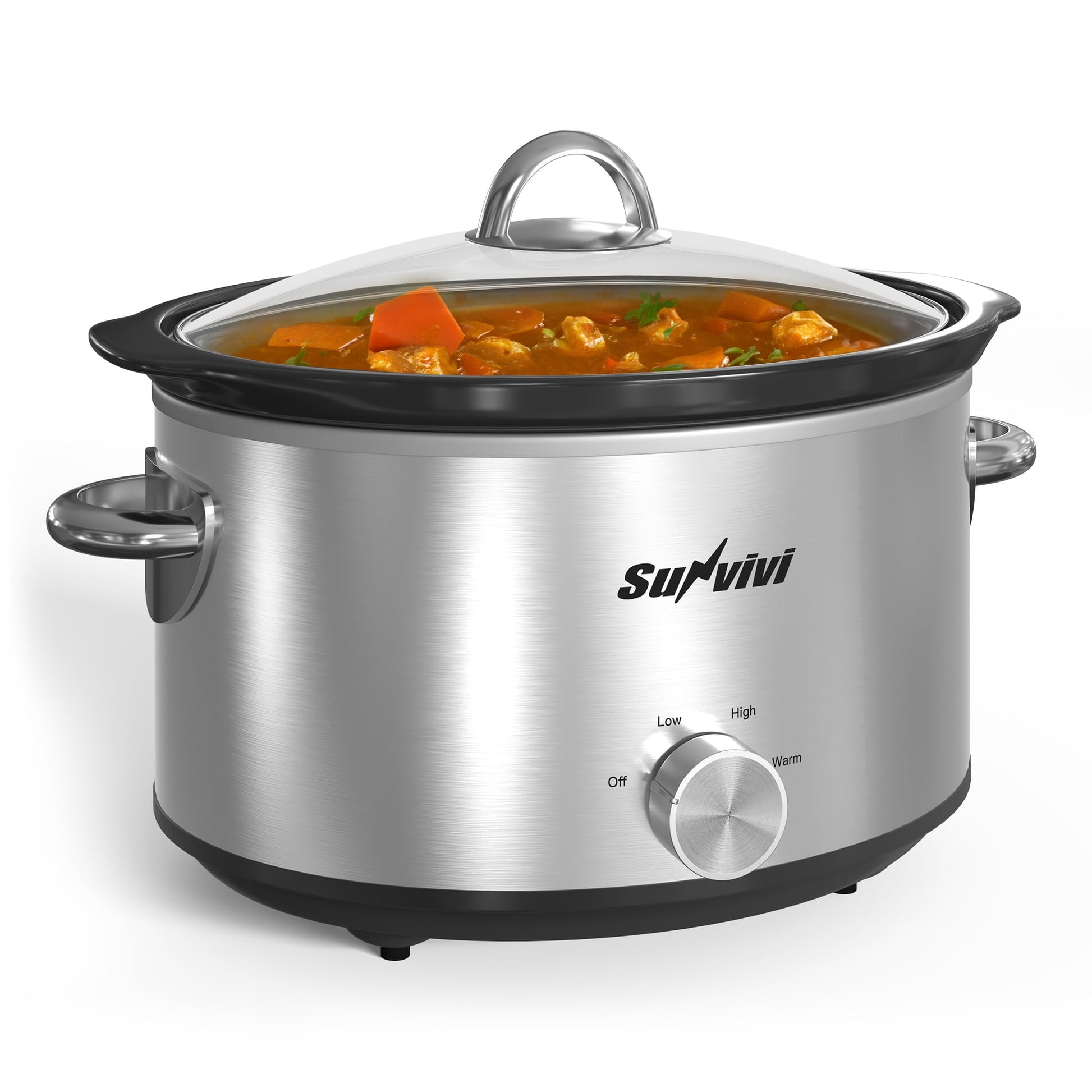 Sunvivi 4QT Compact Slow Cooker & Food Warmer, 3 Temperature Settings - Removable Ceramic Pot, Silver