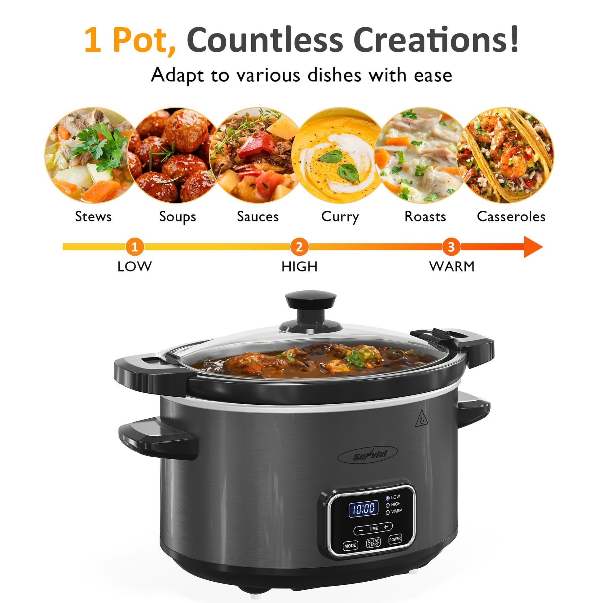 This 4 qt slow cooker is perfect for small families or individuals, offering precise control with its time and temperature settings. Whether you're simmering soups, keeping dishes warm, or searing meats to perfection, the versatility of this mini slow cooker knows no bounds. With its innovative locking lid design, flavors are securely sealed in, ensuring that every dish turns out perfect. Just simply set it and forget it, allowing the cooker to work its magic while you focus on other tasks. The digital display screen will provide a clear countdown timer, enabling users to track the cooking progress at any moment. Experience the culinary excellence of the small programmable pot, making meal prep a breeze and every dish a masterpiece.