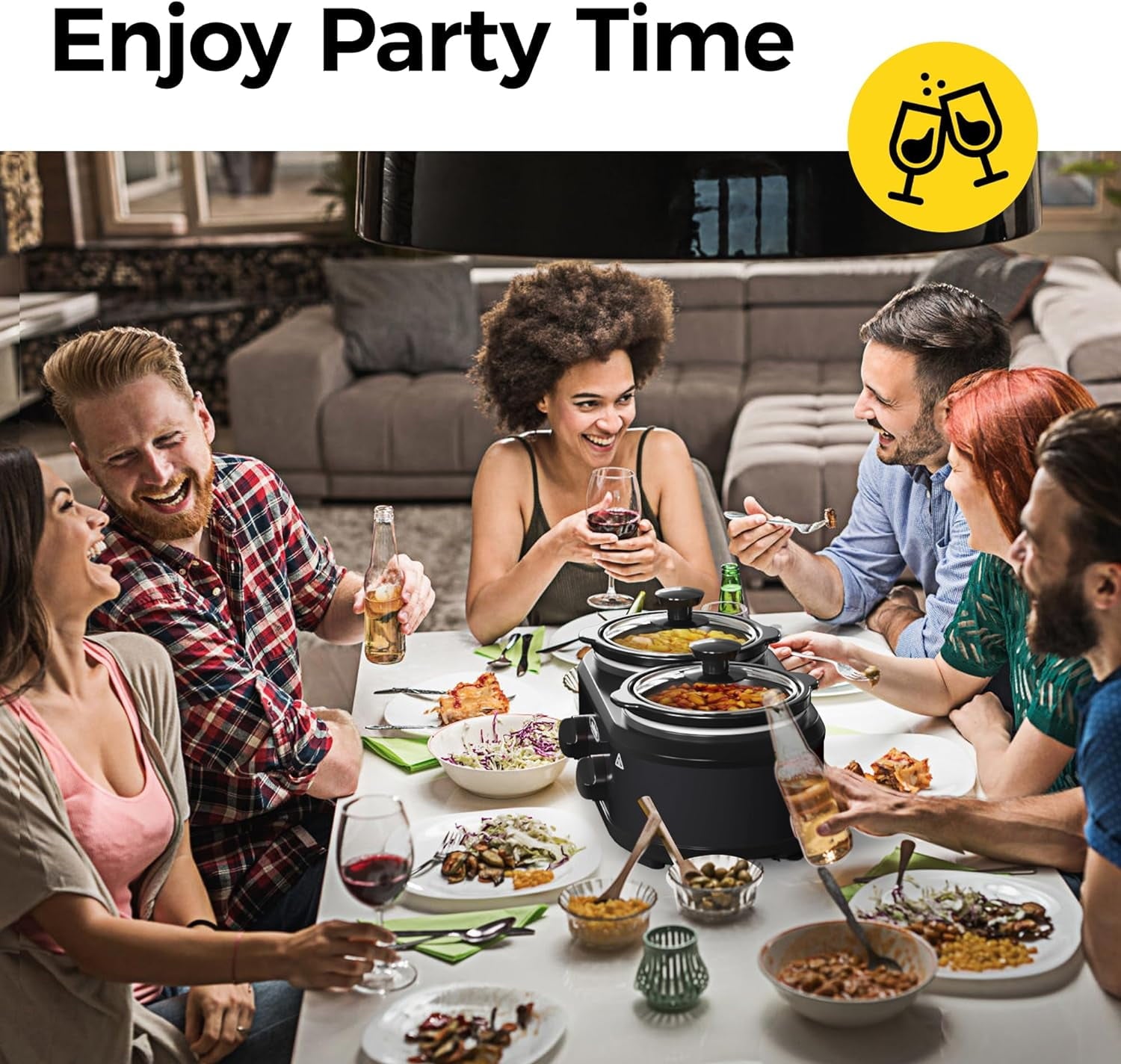 Sunvivi Double Slow Cooker Mini Buffet Server - Dual 2.5QT Pots, Stainless Steel, Black