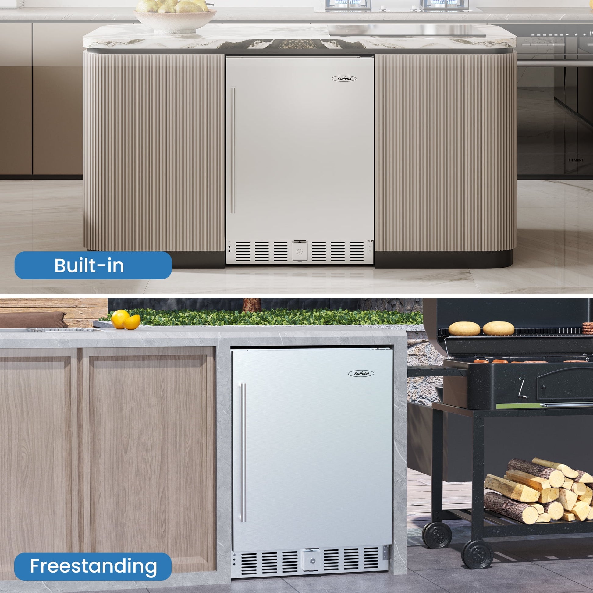 Sunvivi Outdoor & Indoor Beverage Refrigerator, 24 Inch Stainless Steel Under Counter Drink Fridge, Silver Weatherproof Can Cooler Wine Chiller with Lock for Kitchen, Office, Patio, Bar, Home
