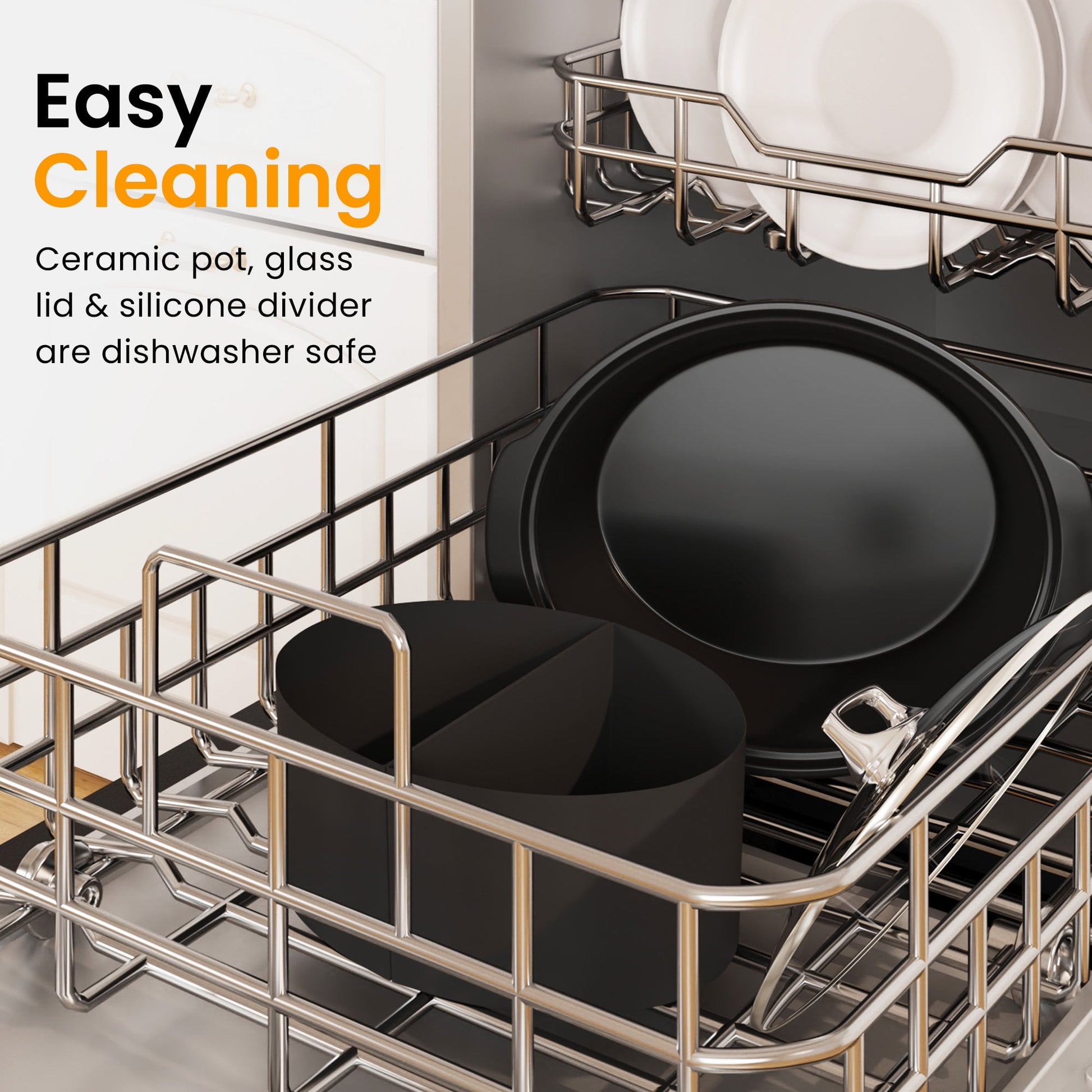 Experience effortless meal prep with the Sunvivi 7QT Programmable Slow Cooker, a versatile 6 quart programmable slow cooker in cornflower blue designed for busy kitchens. This digital slow cooker features dual 2-in-1 silicone liners, allowing you to cook two dishes at once for added convenience and variety. The user-friendly programmable timer lets you set your cooking time from 30 minutes up to 20 hours, while three adjustable temperature settings¡ªhigh, low, and warm¡ªensure your meals retain maximum moisture and flavor. The oval programmable multifunctional 6 qt slow cooker design is perfect for family dinners, parties, or meal prepping. Cleanup is simple with dishwasher-safe components, including the removable pot and silicone liners, so you can spend less time cleaning and more time enjoying meals with loved ones. The see-through lid makes it easy to monitor your food without lifting the cover. Whether you¡¯re slow cooking, braising, or keeping food warm, the Sunvivi 7QT Programmable Slow Cooker offers the flexibility and reliability you need for delicious, stress-free cooking every day.