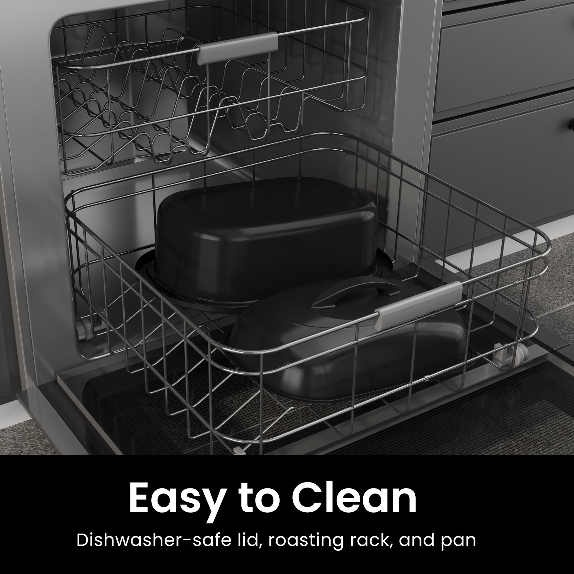 Sunvivi Roaster Oven with Self-Basting Lid, 20qt Electric Roaster with Removable Pan & Rack, Turkey Roaster Oven with Defrost & Warm Function, Stainless Steel, Grey