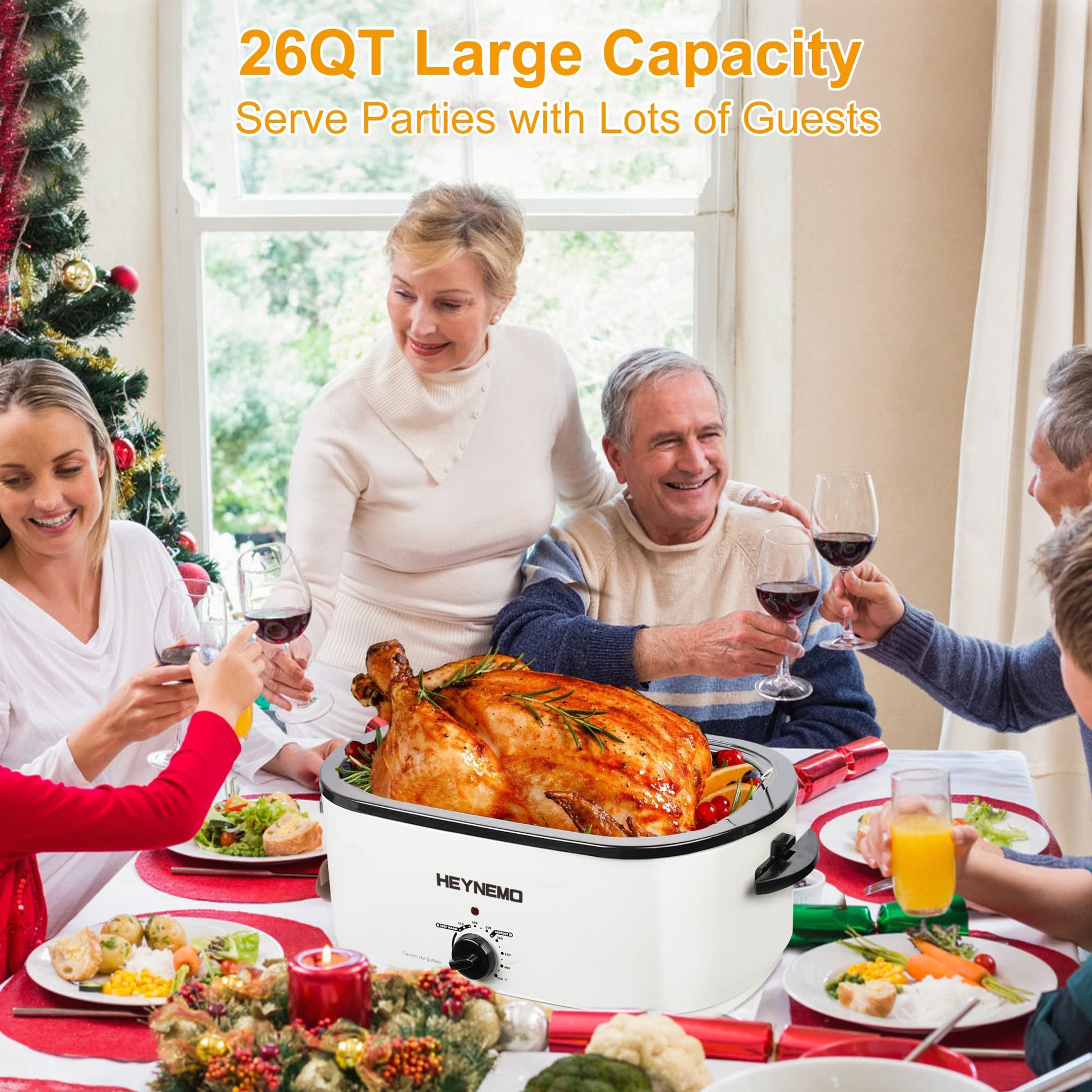 HEYNEMO Roaster Oven 24 Quart, Electric Roaster Oven, Turkey Roaster Oven Electric with Self-Basting Lid